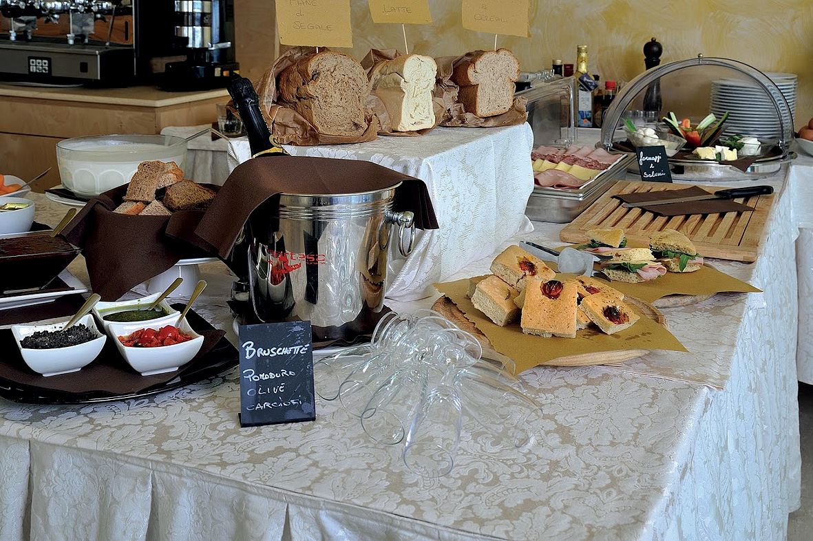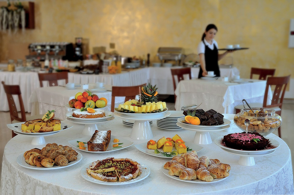 zpravidla servírované s výběrem z menu, předkrmy a saláty formou bufetu; nápoje za poplatek