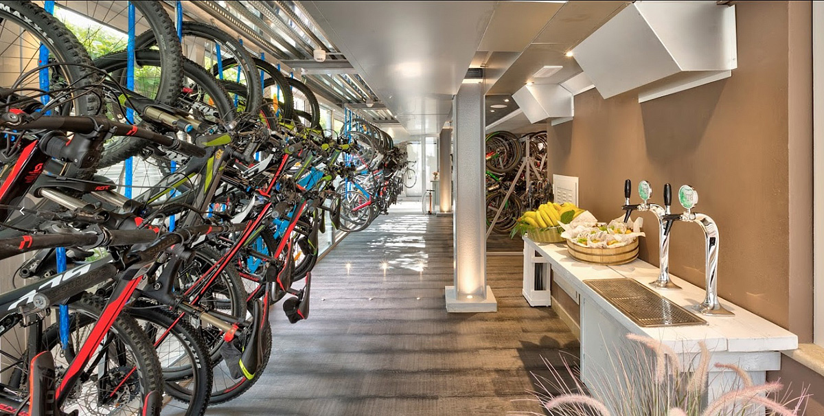 bazén s vířivkou, wellness centrum Aqua (2x vířivka, finská sauna, parní lázeň, relaxační část, malá posilovna), půjčovna městských kol, plážový servis* (1 slunečník a 2 lehátka); služby pro cyklisty* – půjčovna horských i silničních kol (více jak 150 kusů), servis, itineráře různé náročnosti, organizované vyjížďky