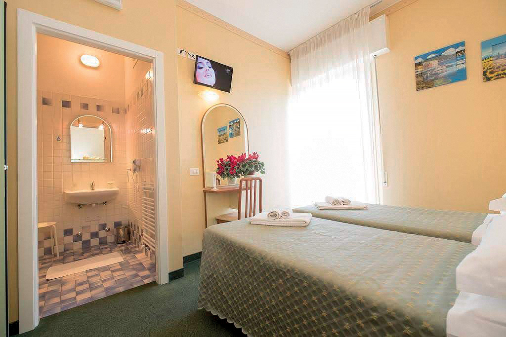 klidná poloha pár kroků od pláže i dochozí vzdálenost do historického centra Rimini