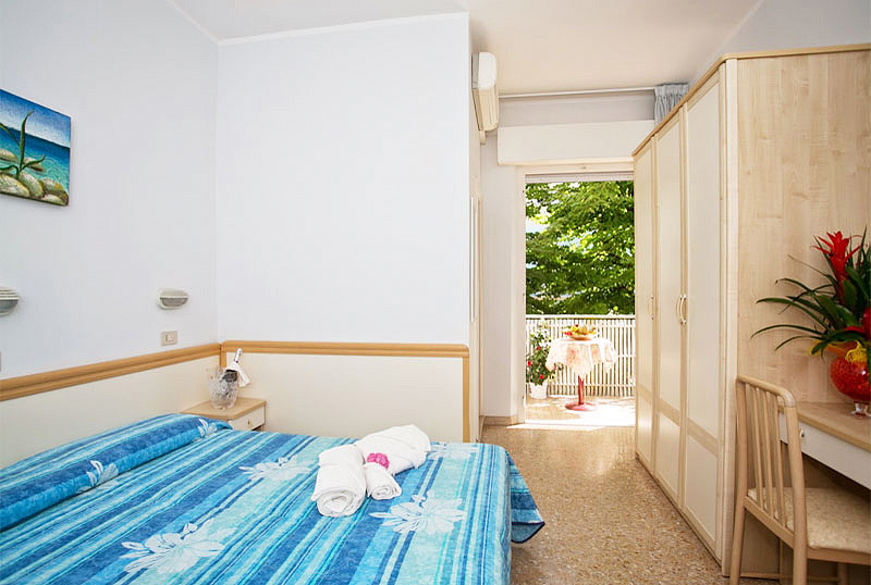 pokoj s manželskou postelí či 2 samostatnými lůžky, sociální zařízení se sprchou, balkon; 3. a 4. lůžko formou přistýlky či palandy