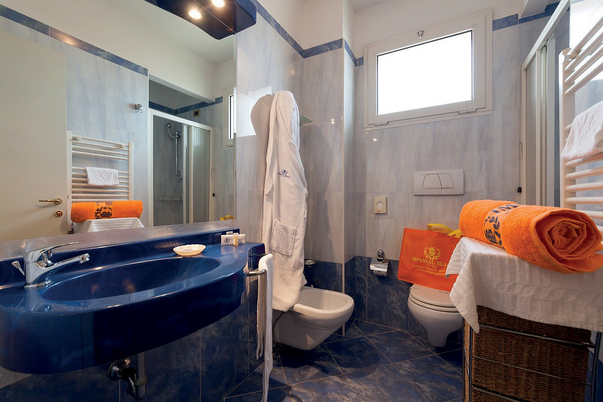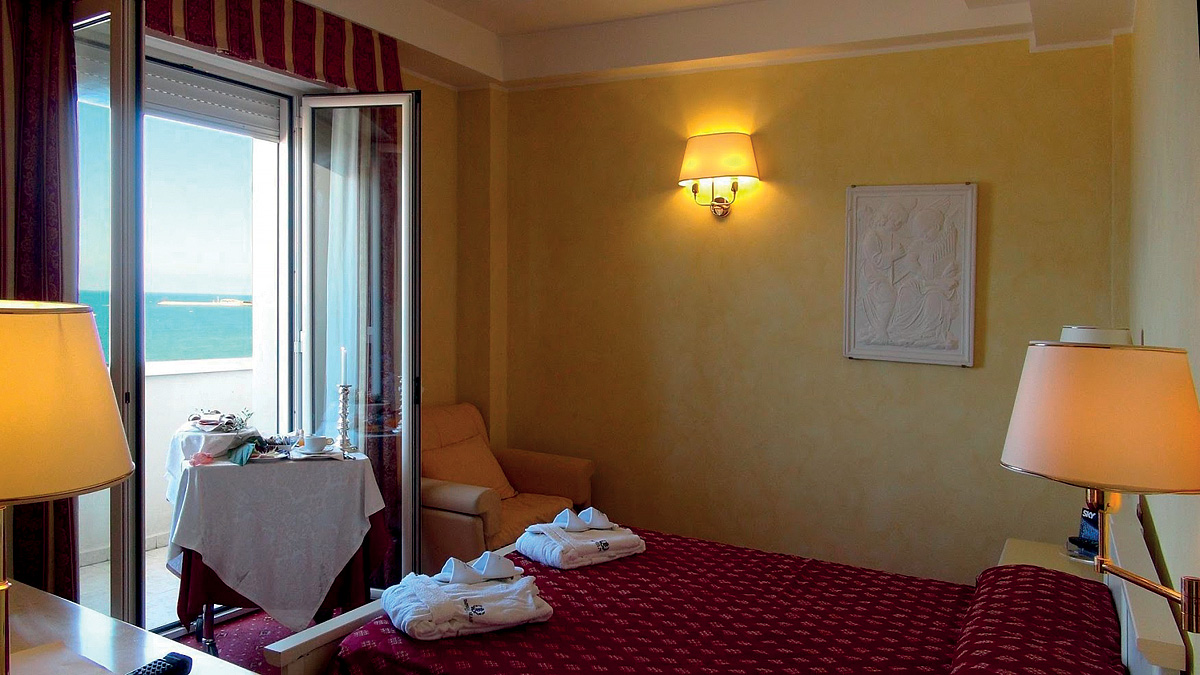 pokoj s manželskou postelí či 2 samostatnými lůžky, sociální zařízení se sprchou, zpravidla balkon s bočním výhledem na moře; 3. lůžko formou přistýlky, 4. lůžko vždy palanda