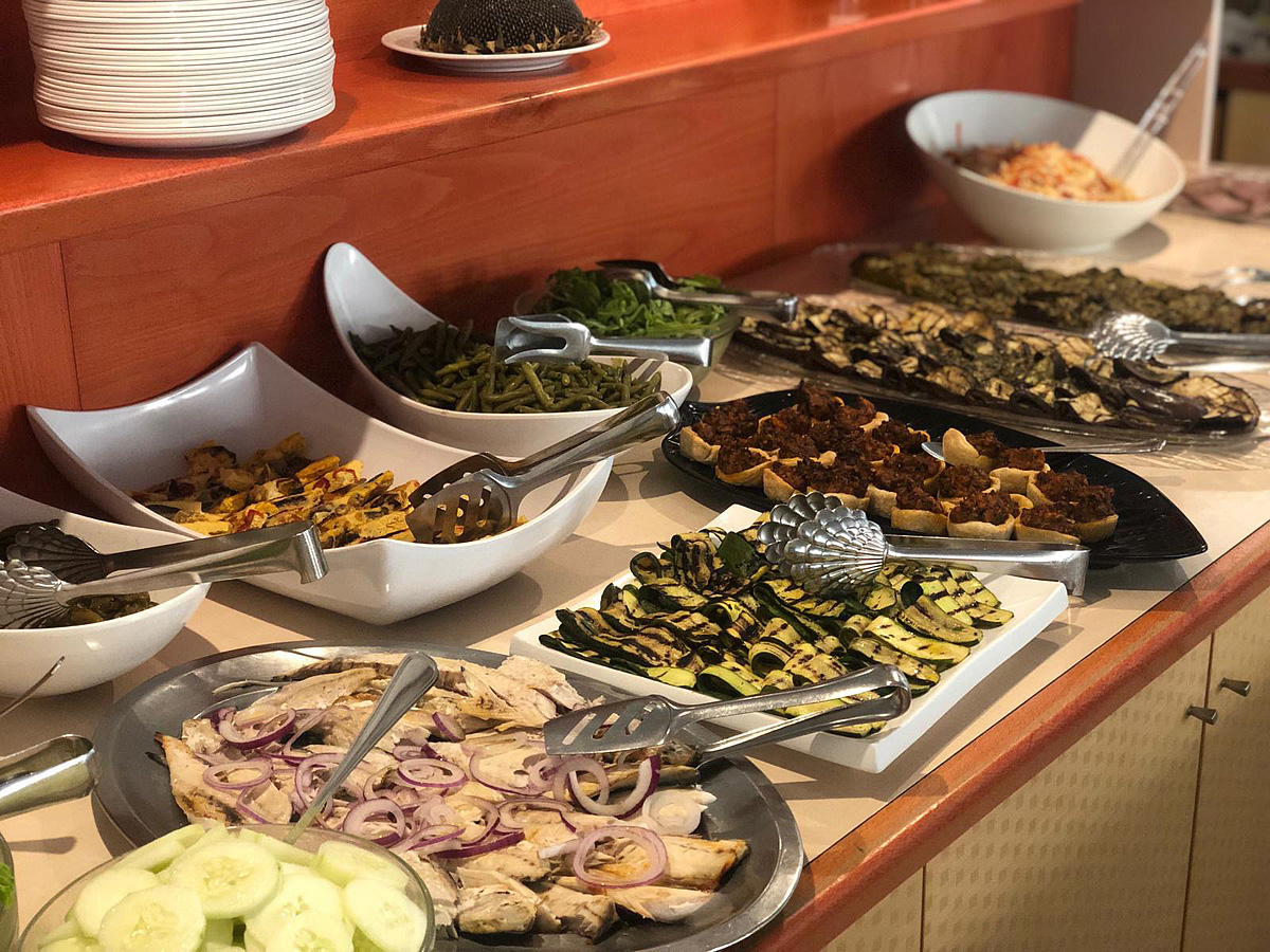 zpravidla servírované, výběr z menu, salátový bufet, 0,5 l vody; ostatní nápoje za poplatek