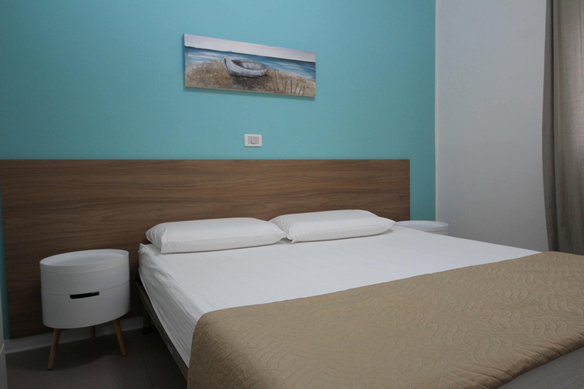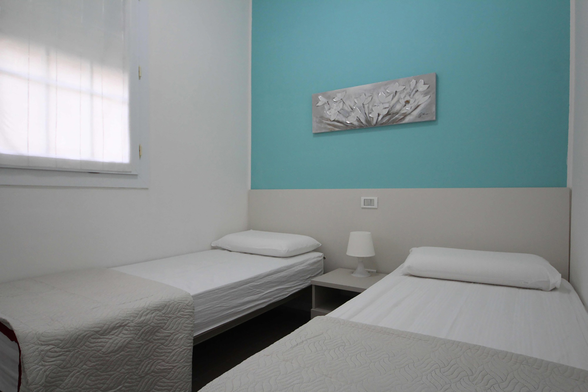 1 ložnice s manželskou postelí, 1 ložnice s 2 samostatnými lůžky, obývací pokoj s kuchyňským koutem a příp. rozkládacím gaučem pro 1 osob, sociální zařízení se sprchou, balkon či terasa