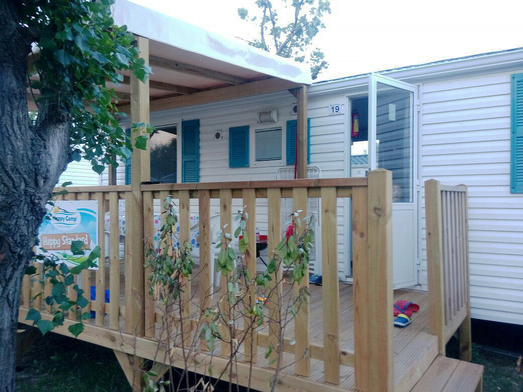 mobilhome Happy easy – klimatizace*, malý elektrický gril; mobilhome Happy plus a premium – klimatizace*, malý elektrický gril, kávovar a mikrovlnka; mobilhome Happy superior – klimatizace*, malý elektrický gril, kávovar, mikrovlnka, topinkovač, fén
