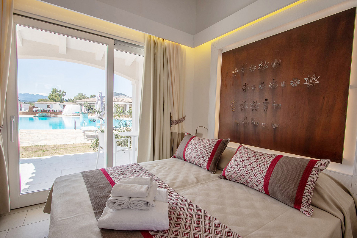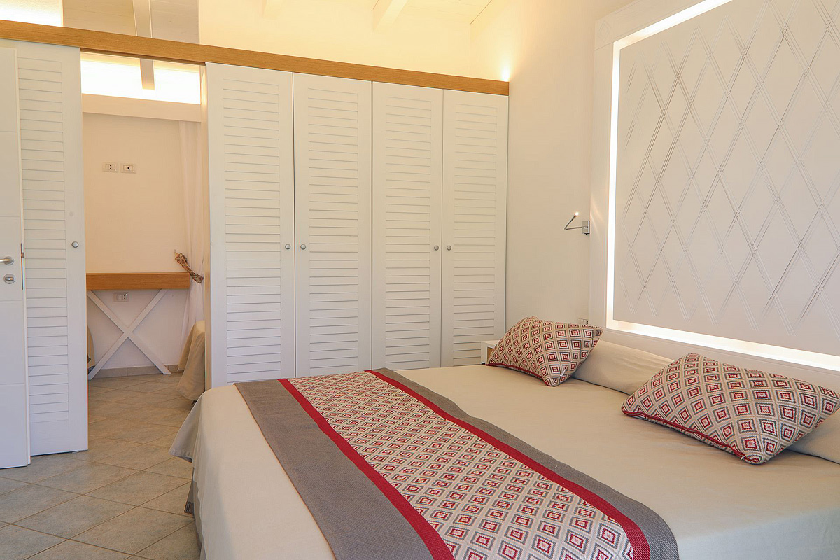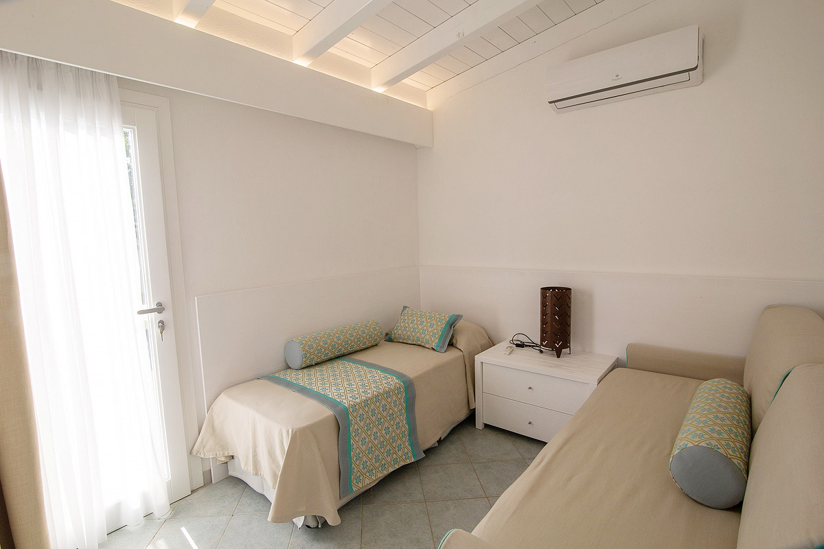 pokoj s manželskou postelí či 2 samostatnými lůžky, 3. a 4. lůžko formou pevného lůžka částečně oddělené od hlavního pokoje, sociální zařízení zpravidla se sprchou, terasa; pokoje byly nedávno zrekonstruovány a nachází se v samostatných vilkách, maximální obsazenost: 4 dospělí + infant do 2,99 let