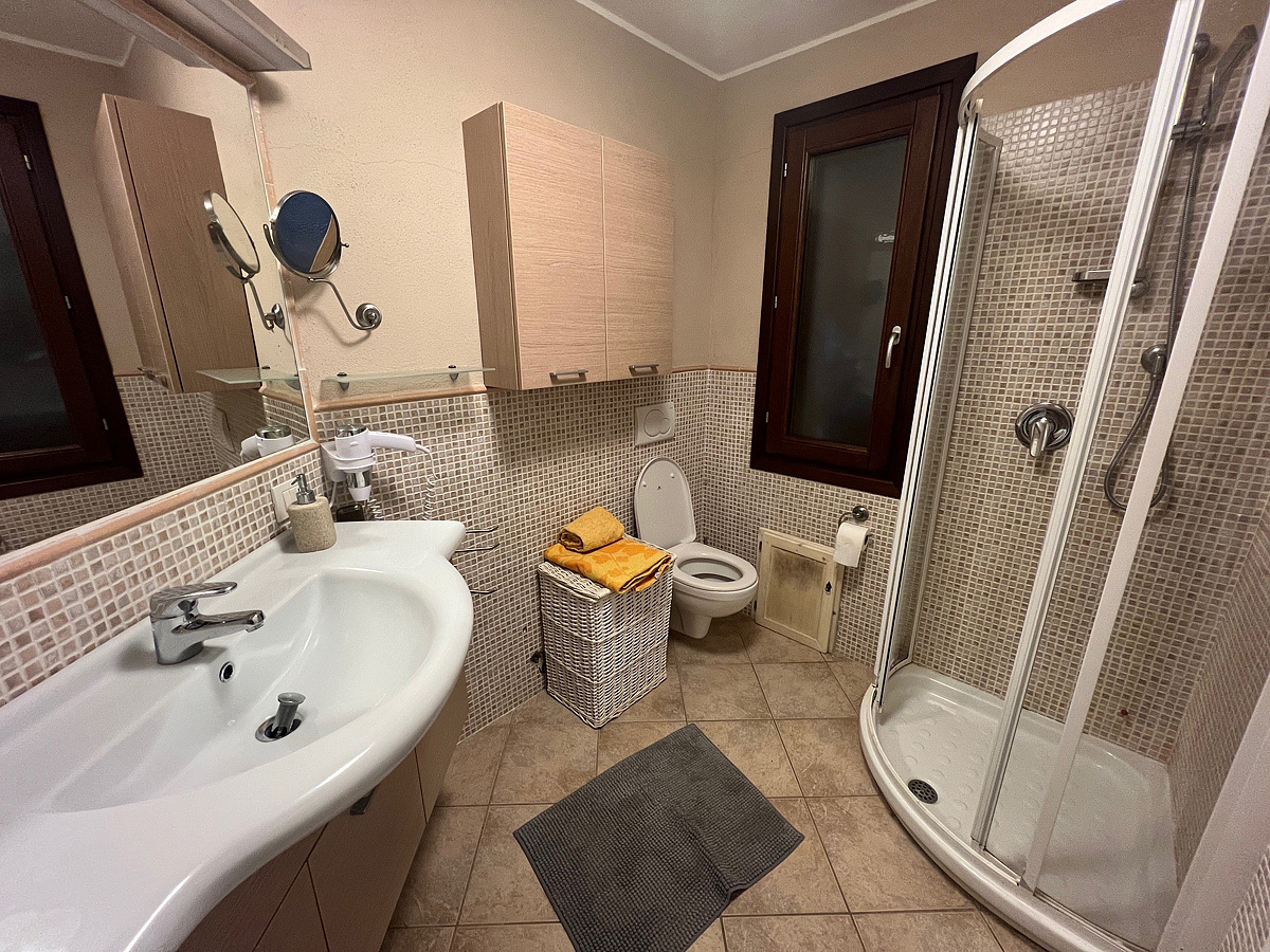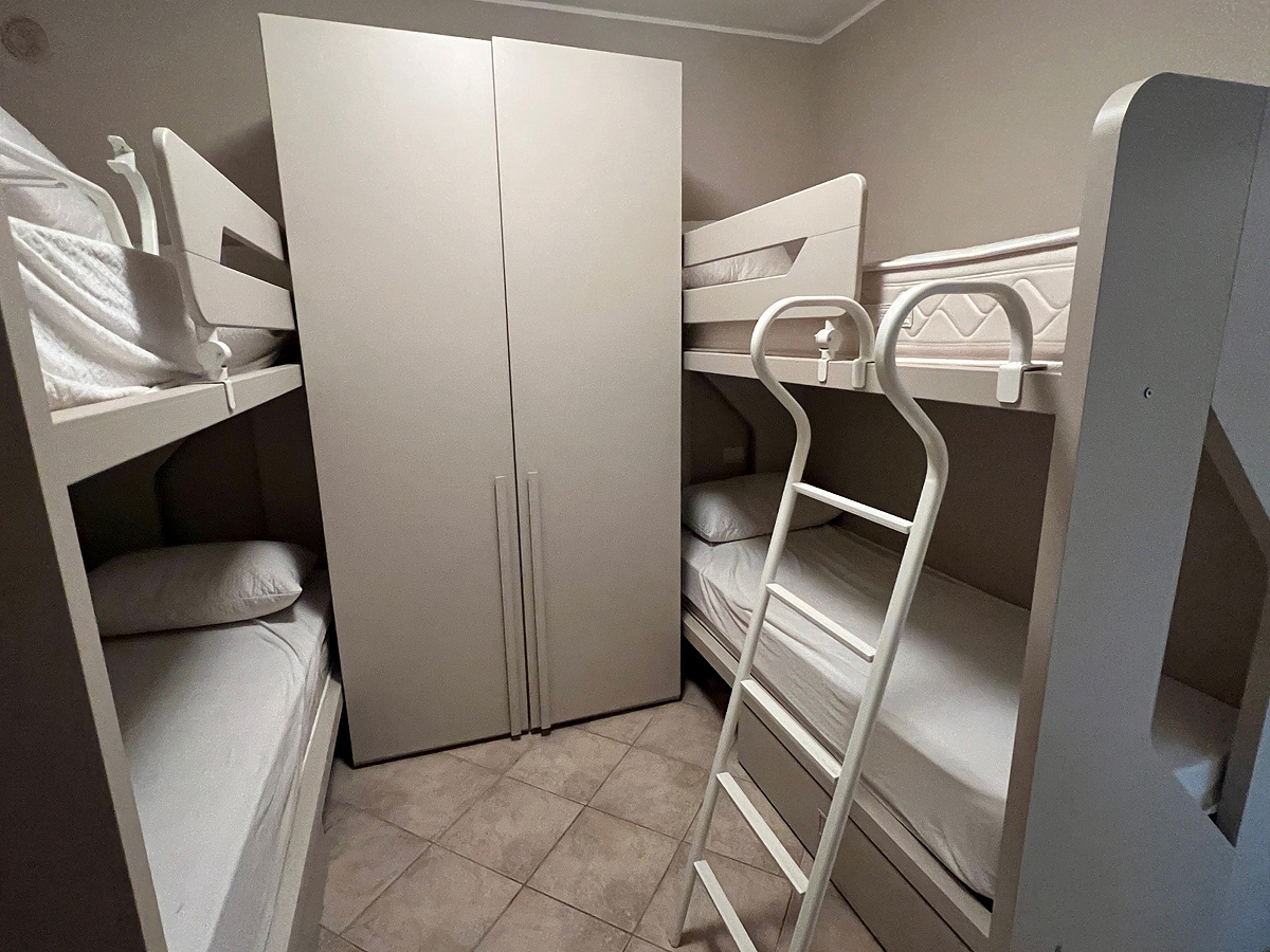 1 ložnice s manželskou postelí, 1 ložnice se 2 palandami, obývací pokoj s kuchyňským koutem a případně rozkládacím gaučem pro 1 osobu, sociální zařízení se sprchou, terasa s posezeními