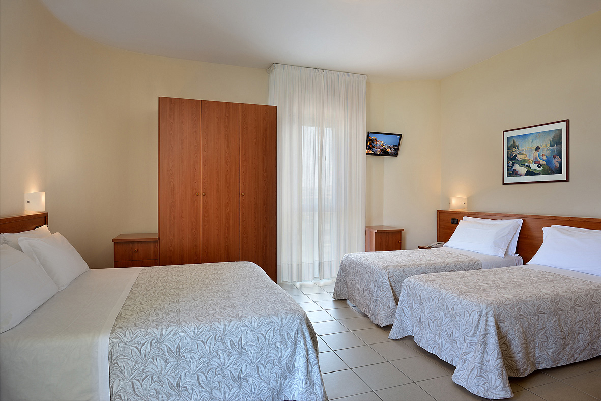 24 m² – pokoj s manželskou postelí či 2 samostatnými lůžky, 3. a 4. lůžko formou přistýlky či pevného lůžka, sociální zařízení se sprchou, balkon s přímým výhledem na moře; možnost 5. lůžka či postýlky na vyžádání