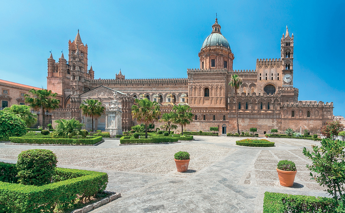 Sicílie je největší ostrov ve Středozemním moři (přes 25 tis. km2 a 5 milionů obyvatel). Je charakteristický hornatým povrchem, jemuž dominuje nejvyšší evropská činná sopka, 3.340 metrů vysoká Etna. Sicílii osídlili již v 8. stol. př. n. l. jónští Řekové, kteří zde mimo jiné založili své největší město vůbec, půlmilionové Syrakusy. Po druhé punské válce se Sicílie stala římskou kolonií. Po pádu Říma ji ovládli Vandalové a později Gótové, vytlačení následně byzantským císařem Justiniánem. V raném středověku pak ovládali Sicílii Normané. Z antických i středověkých dob se na celém ostrově dochovalo nesmírné množství památek, jež jsou spolu s Etnou a nádherným mořem hlavním turistickým magnetem ostrova.