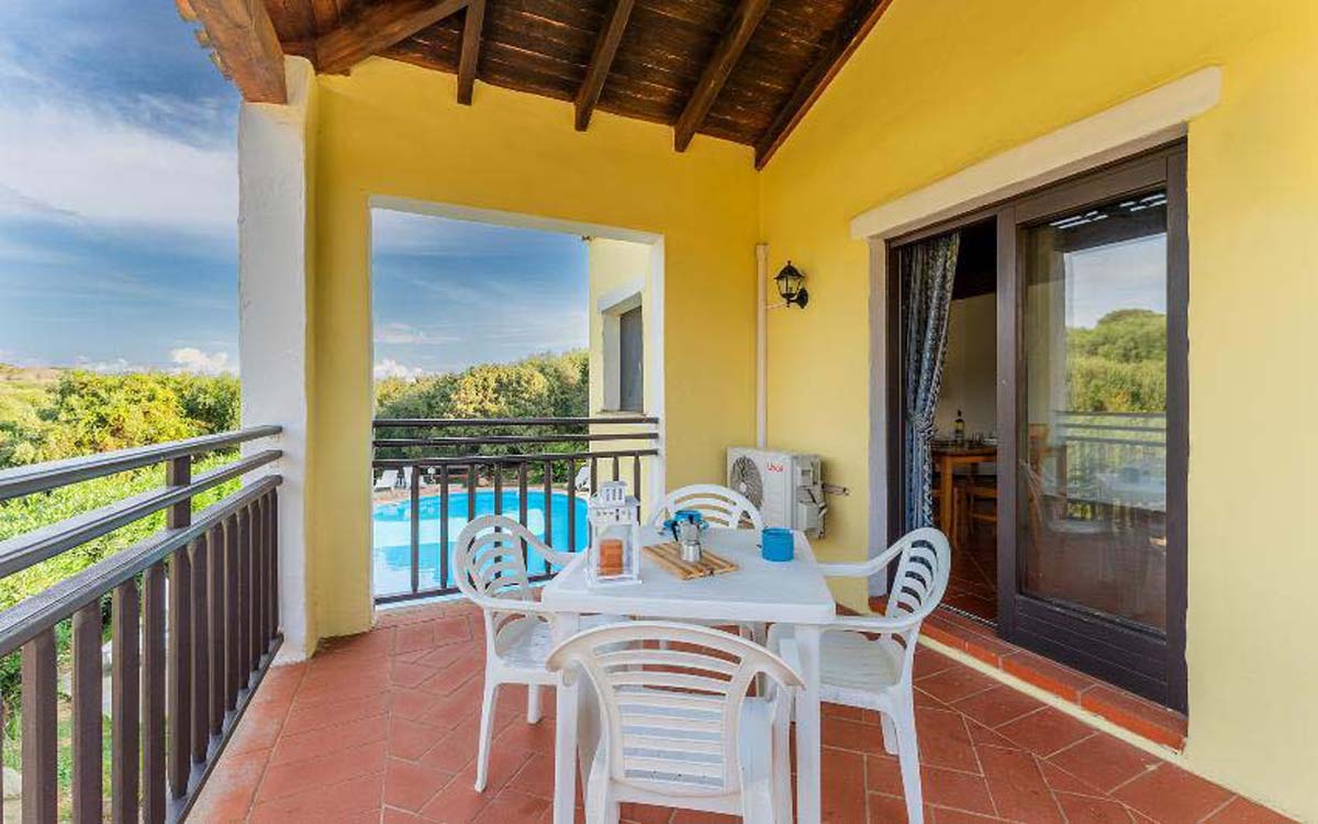 60 m² - 1 ložnice s manželskou postelí, obývací pokoj s kuchyňským koutem a rozkládacím gaučem pro 2 osoby, sociální zařízení se sprchou či vanou, balkon nebo terasa; sdílený bazén; možnost 5. lůžka na vyžádání za poplatek 15 € / noc (platba na místě)