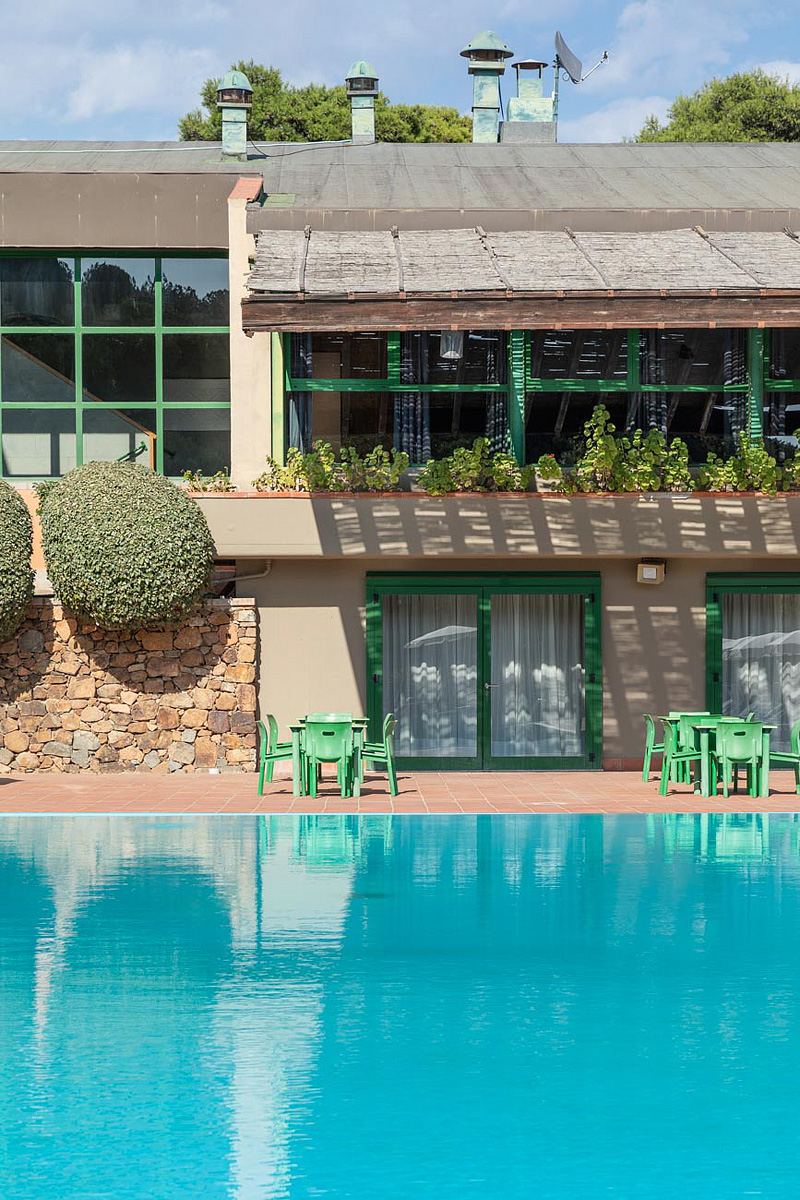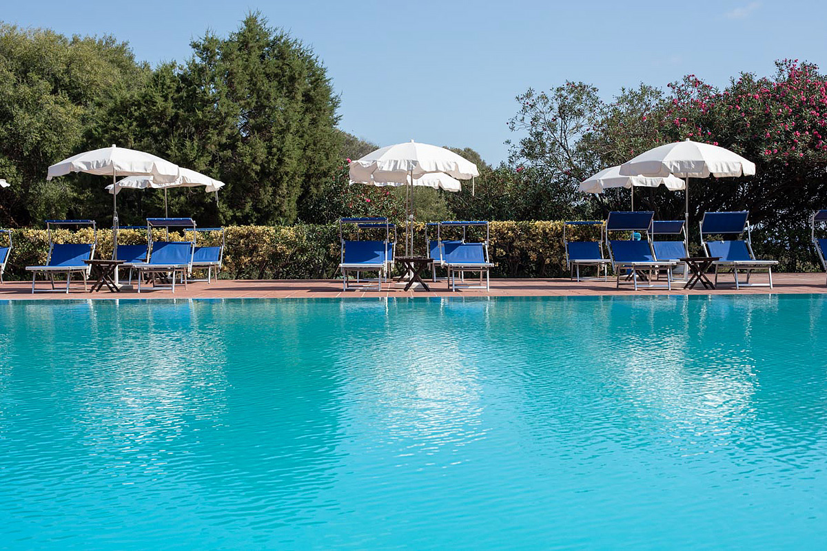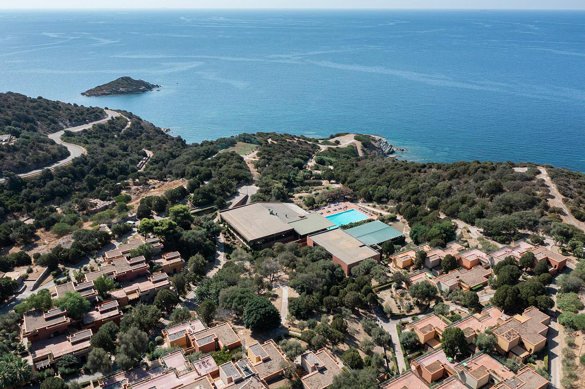 plně samostatný residenční a vilový komplex; apartmány jsou umístěny v jedno až dvoupatrových řadových vilách na panoramatické místě v oblasti capo Teulada – Chia