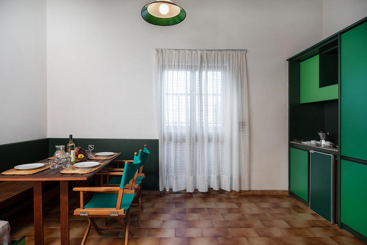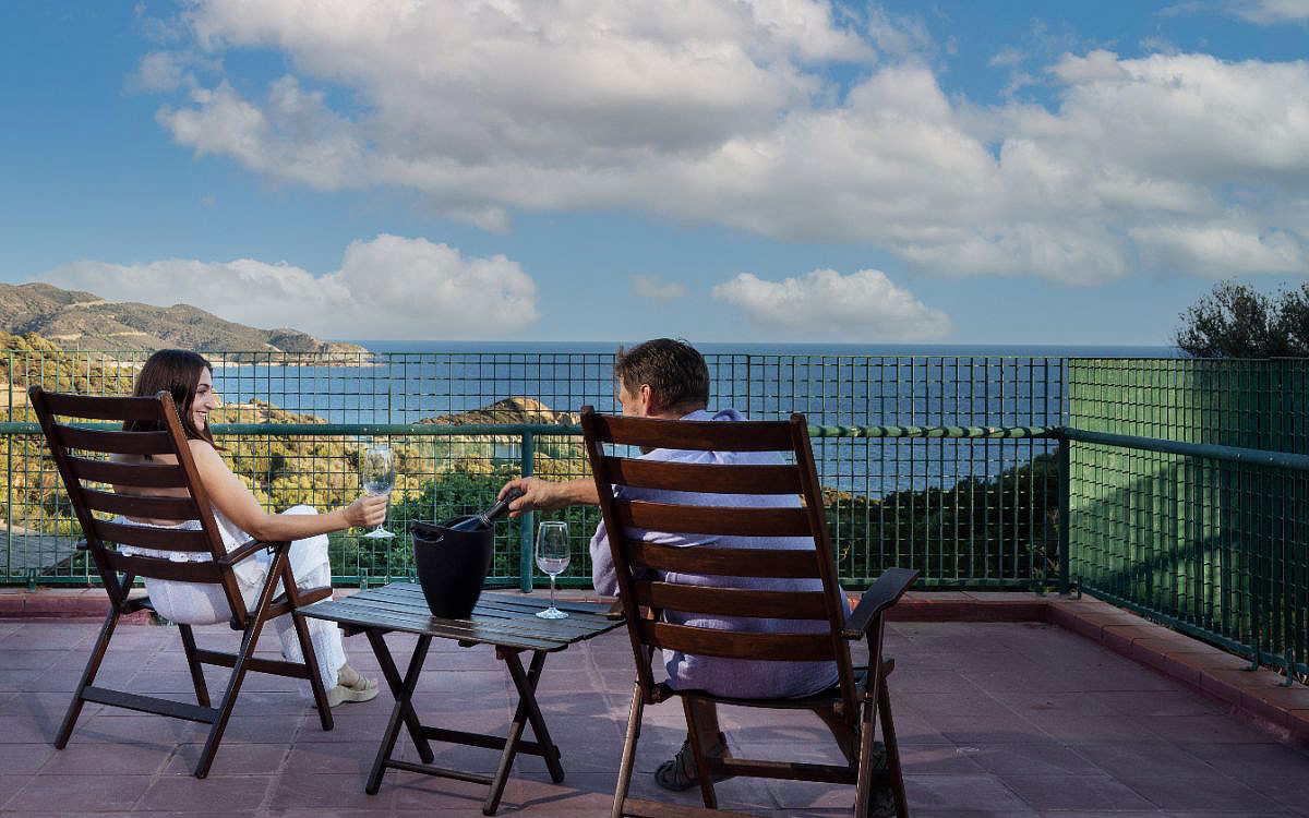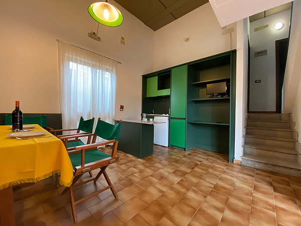 62 m² - dvoupatrový apartmán – v přízemí obývací pokoj s kuchyňským koutem a terasou s předzahrádkou, v patře 2 ložnice s manželskou postelí či 2 samostatnými lůžky, sociální zařízení se sprchou, v neuzavřeném patře 2 samostatná lůžka; apartmány Panoramic mají navíc terasu s výhledem na moře