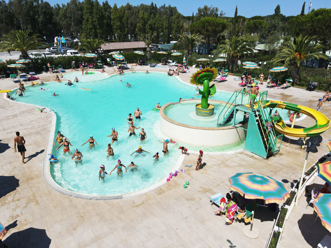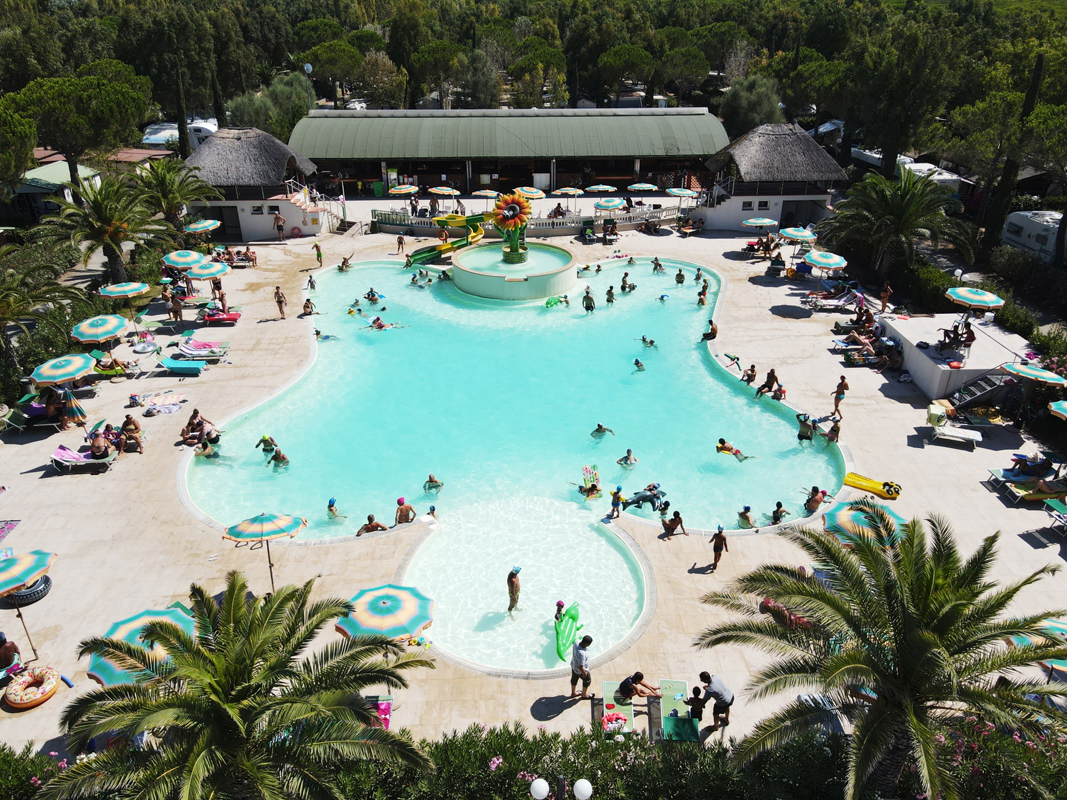 recepce, restaurace / pizzerie / bar, dětské hřiště, animační programy# (cca od poloviny června do konce srpna), plážový minibus* (v určených termínech a hodinách), vyhrazené parkovací stání na parkovišti vedle kempu, minimarket, wi-fi připojení k internetu (časově omezeno)