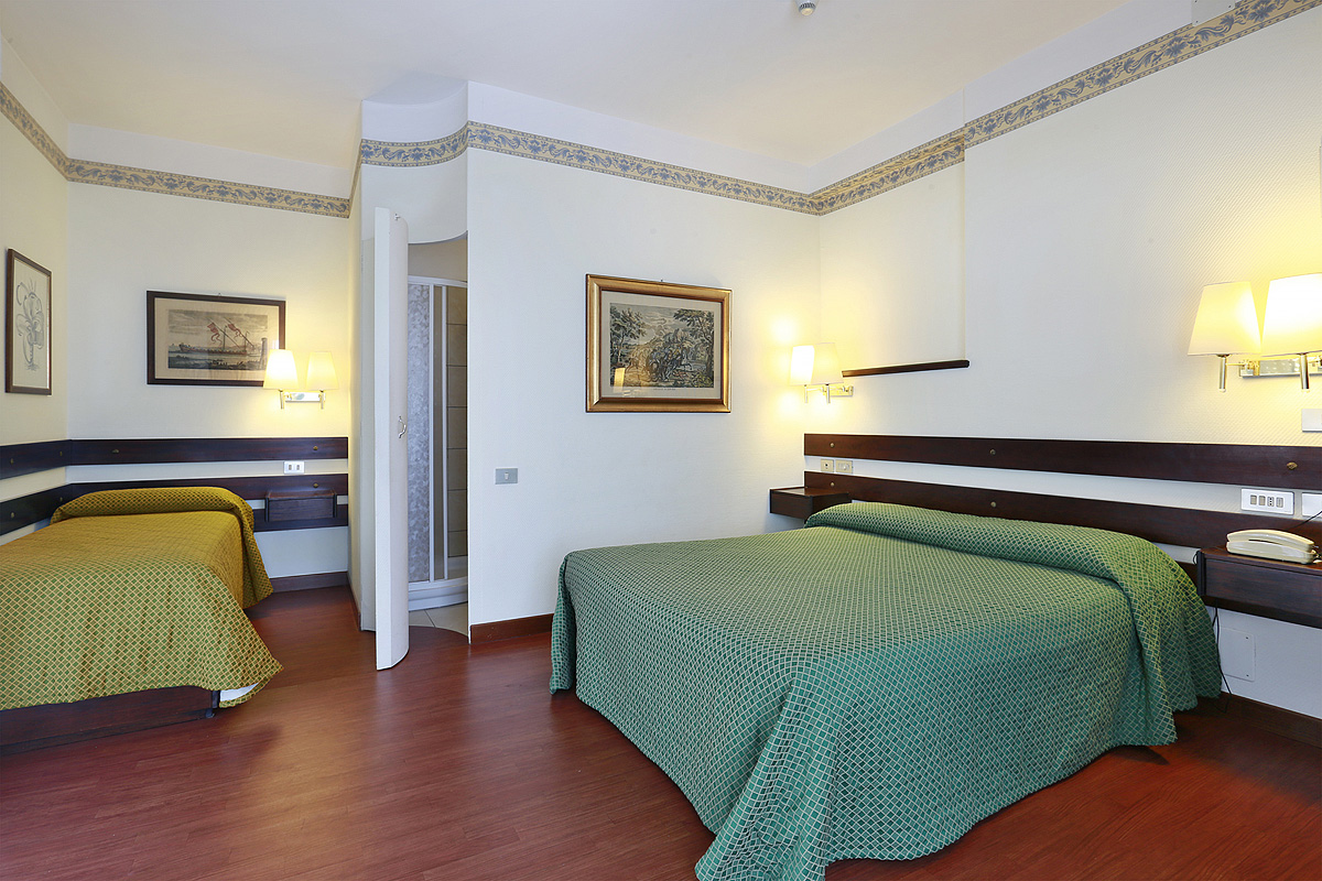 pokoj s manželskou postelí či 2 samostatnými lůžky, sociální zařízení se sprchou; 3. lůžko pevné nebo formou přistýlky