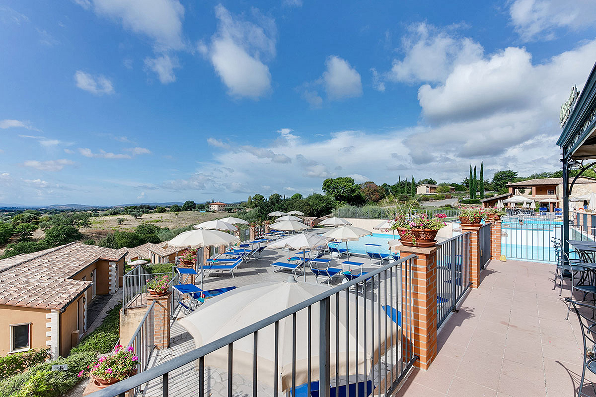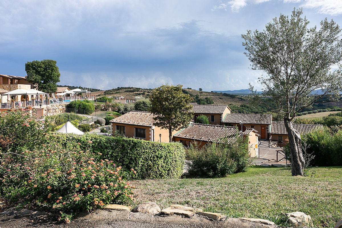 prázdninový komplex zasazený do typické toskánské krajiny s panoramatickým výhledem na historické městečko Magliano