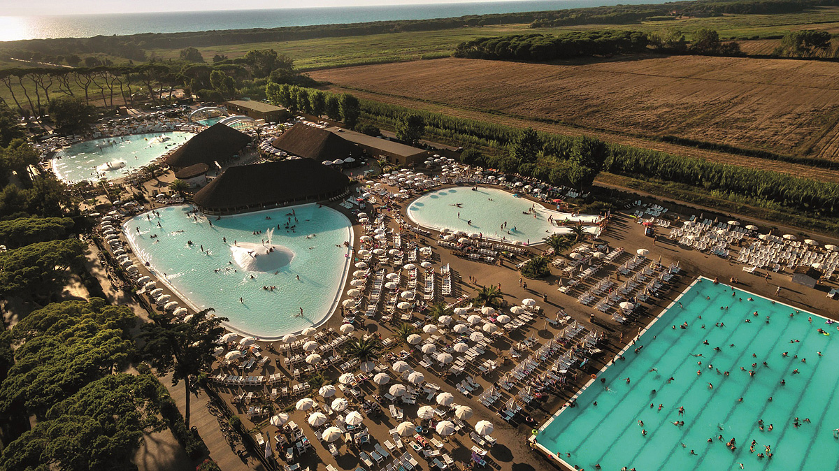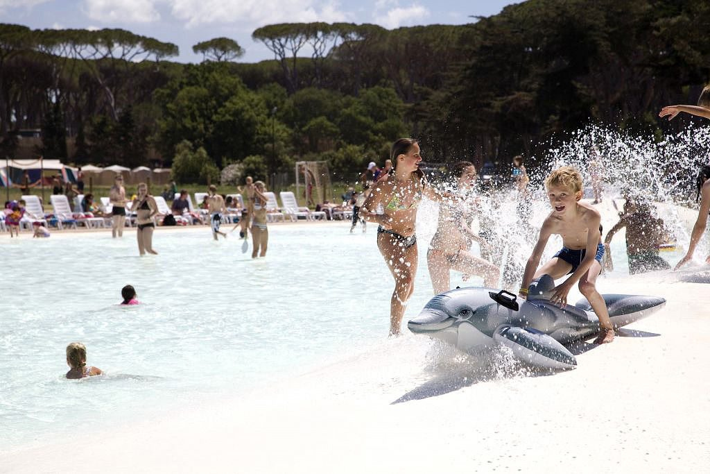 vodní park s 6 bazény (olymijský, 1 v nízké sezóně vyhřívaný a krytý, laguny se skluzavkami, dětský bazén), stolní tenis, půjčovna kol *, minigolf *, půjčovna skútrů a motokár *