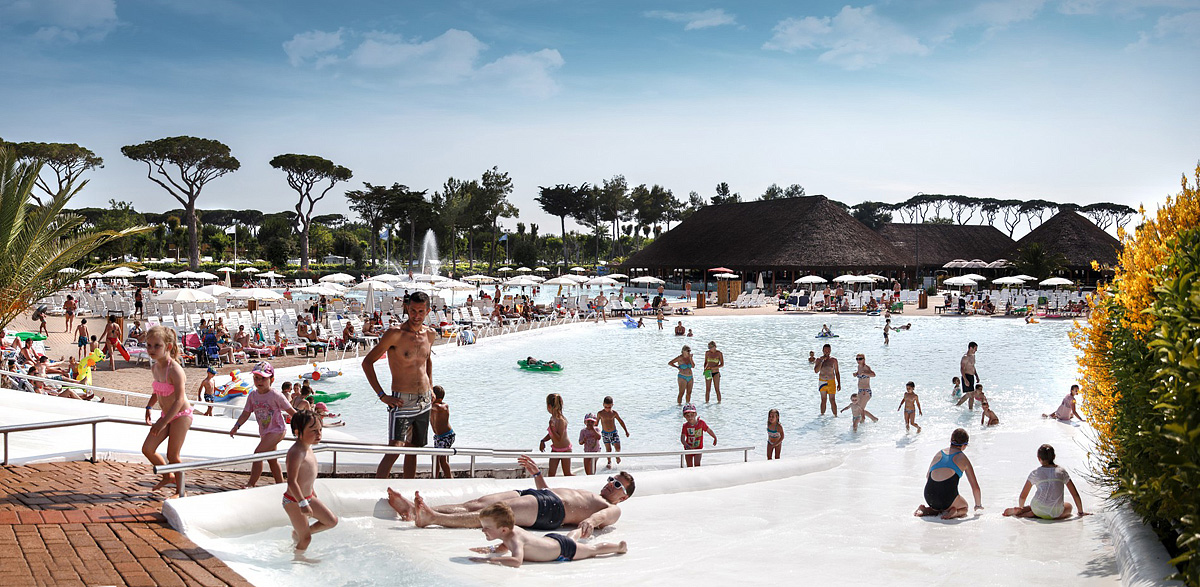 rozlehlý prázdninový resort s pěkným aquaparkem