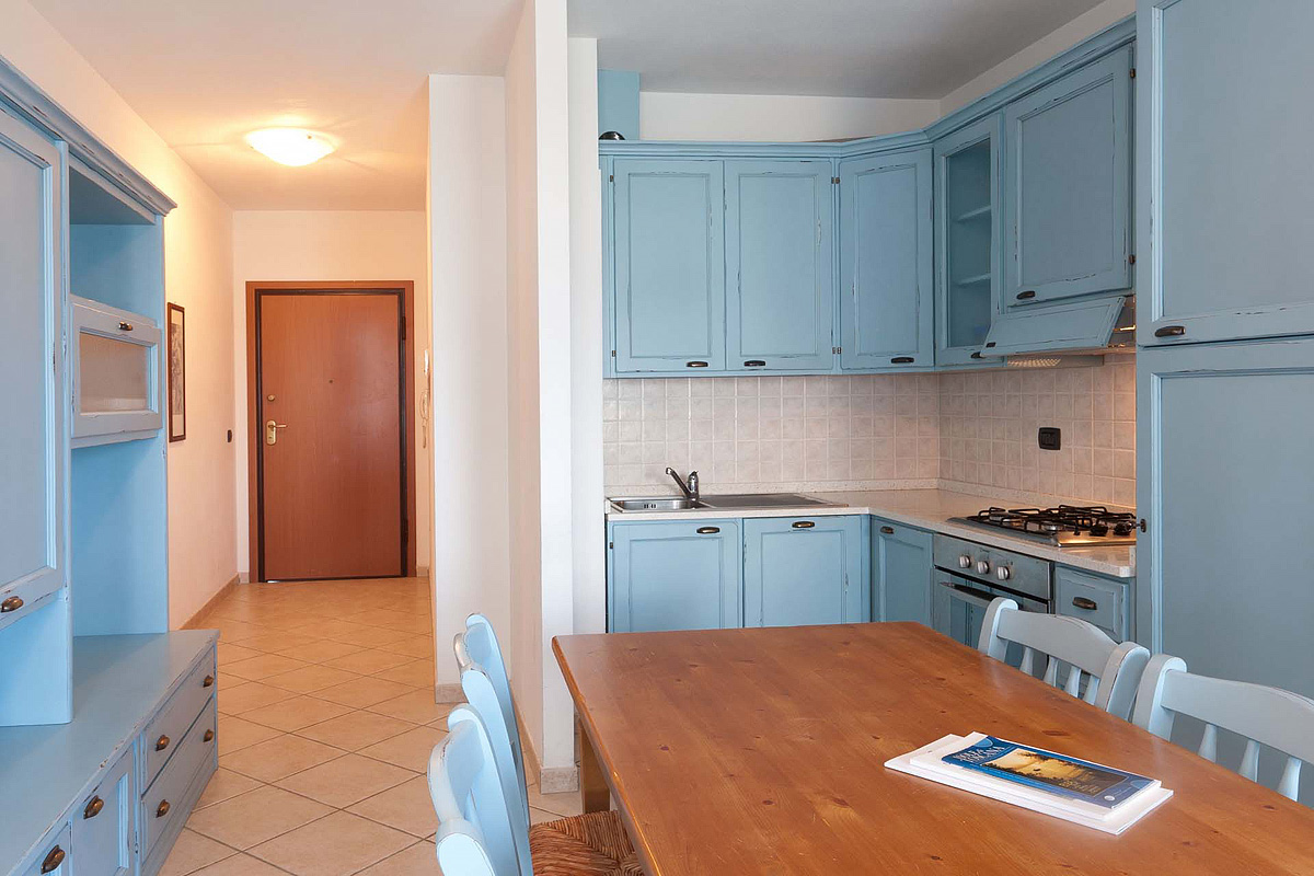 2 ložnice s manželskou postelí nebo 2 oddělenými lůžky, obývací pokoj s kuchyňským koutem a rozkládacím gaučem pro 2 osoby, sociální zařízení se sprchou, terasa či balkon
