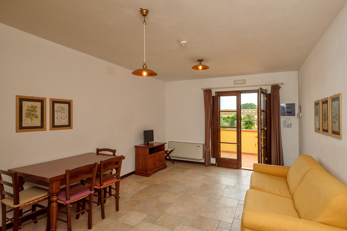 45 m² - ložnice s manželskou postelí, obývací pokoj s kuchyňským koutem a rozkládacím gaučem pro 2 osoby, sociální zařízení se sprchou