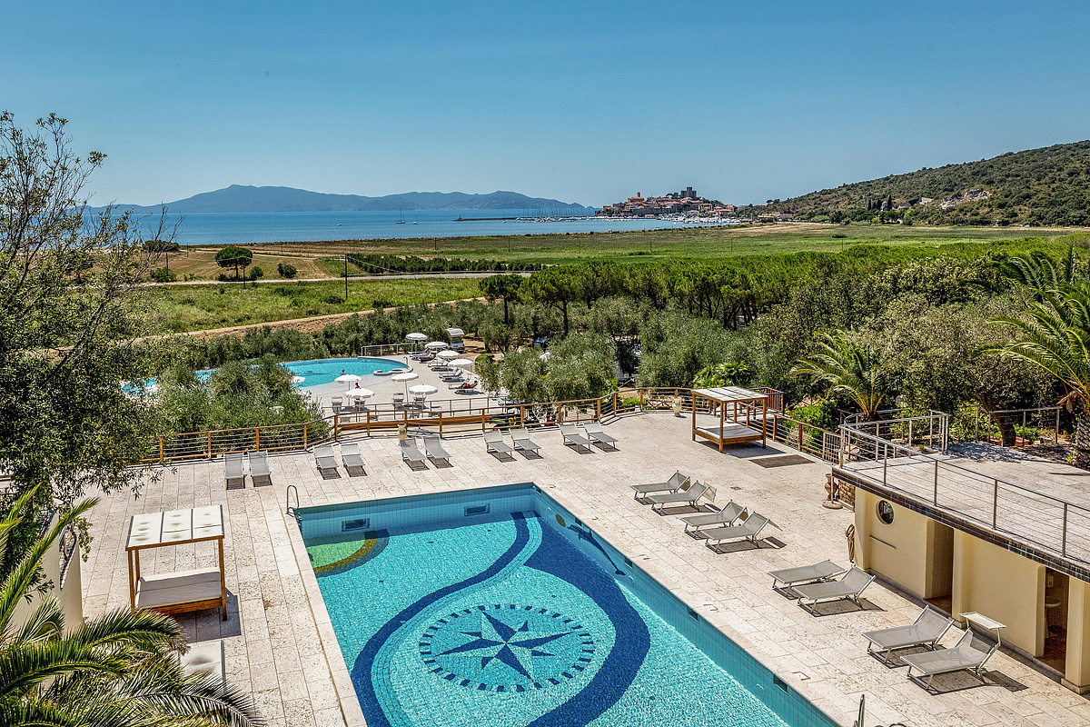 velmi hezký resort s kvalitními službami a výhledem na záliv Talamone,