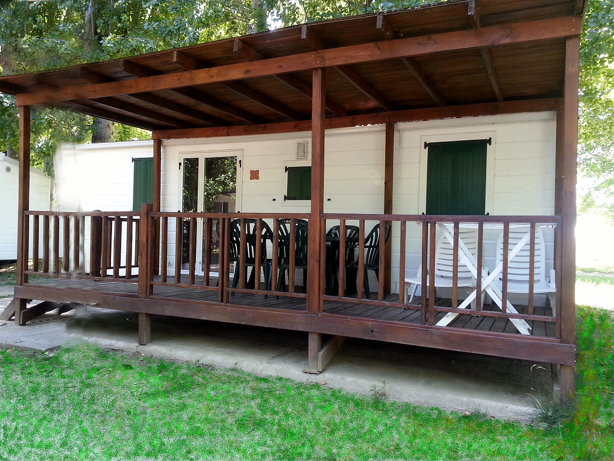 24 m² - ložnice s manželskou postelí, ložnice se 2 lůžky a zavěšeným lůžkem (pro dítě do nedovršených 12 let), obytná část s kuchyňským koutem a lavicí přestavitelnou na lůžko, sociální zařízení se sprchou, dřevěná terasa; doporučeno pro 4 dospělé osoby a 2 děti