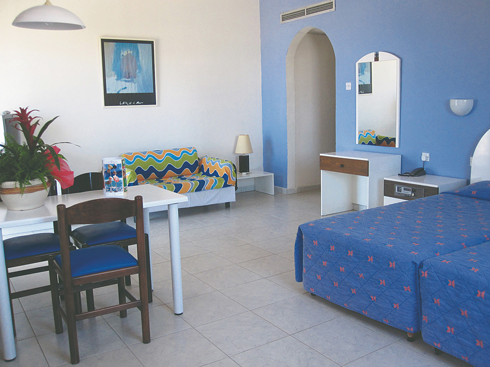ST: koupelna/WC, klimatizace, kuchyňský kout s ledničkou, TV/sat., telefon, trezor za poplatek, balkon nebo terasa. AP/APP: viz ST, oddělená ložnice.