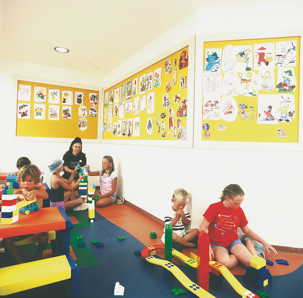 Vstupní hala s recepcí, výtah, restaurace, bar, dětský koutek. Venku bazén, dětské brouzdaliště, terasa na slunění, lehátka a slunečníky zdarma, dětské hřiště.