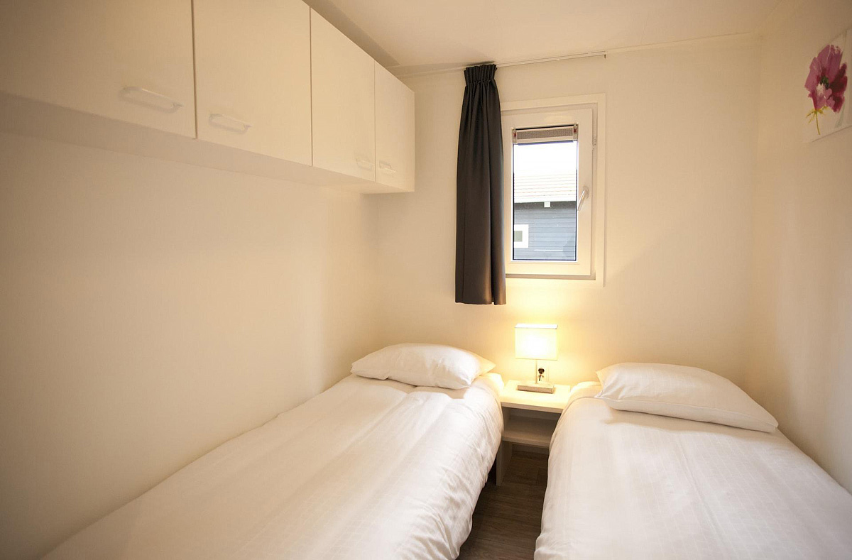 luxusní bungalov, 2 ložnice se 2 samostatnými lůžky, 1 ložnice zpravidla s palandou, obývací pokoj s kuchyňským koutem, sociální zařízení se sprchou, 1 samostatná toaleta, prostorná terasa se zahradním nábytkem, max. obsazení 6 osob, 1 parkovací místo u bungalovu