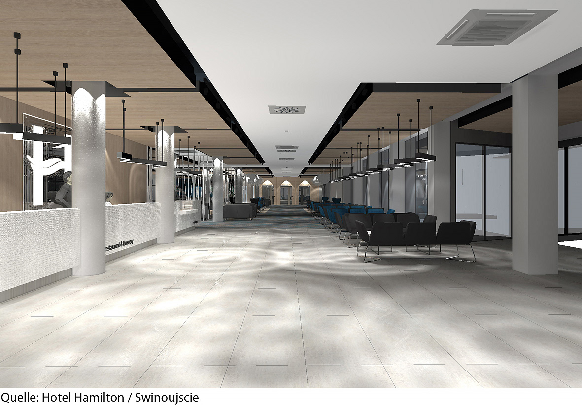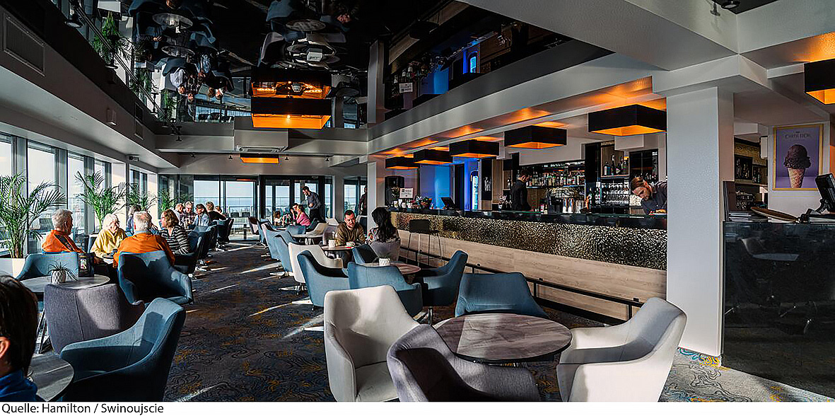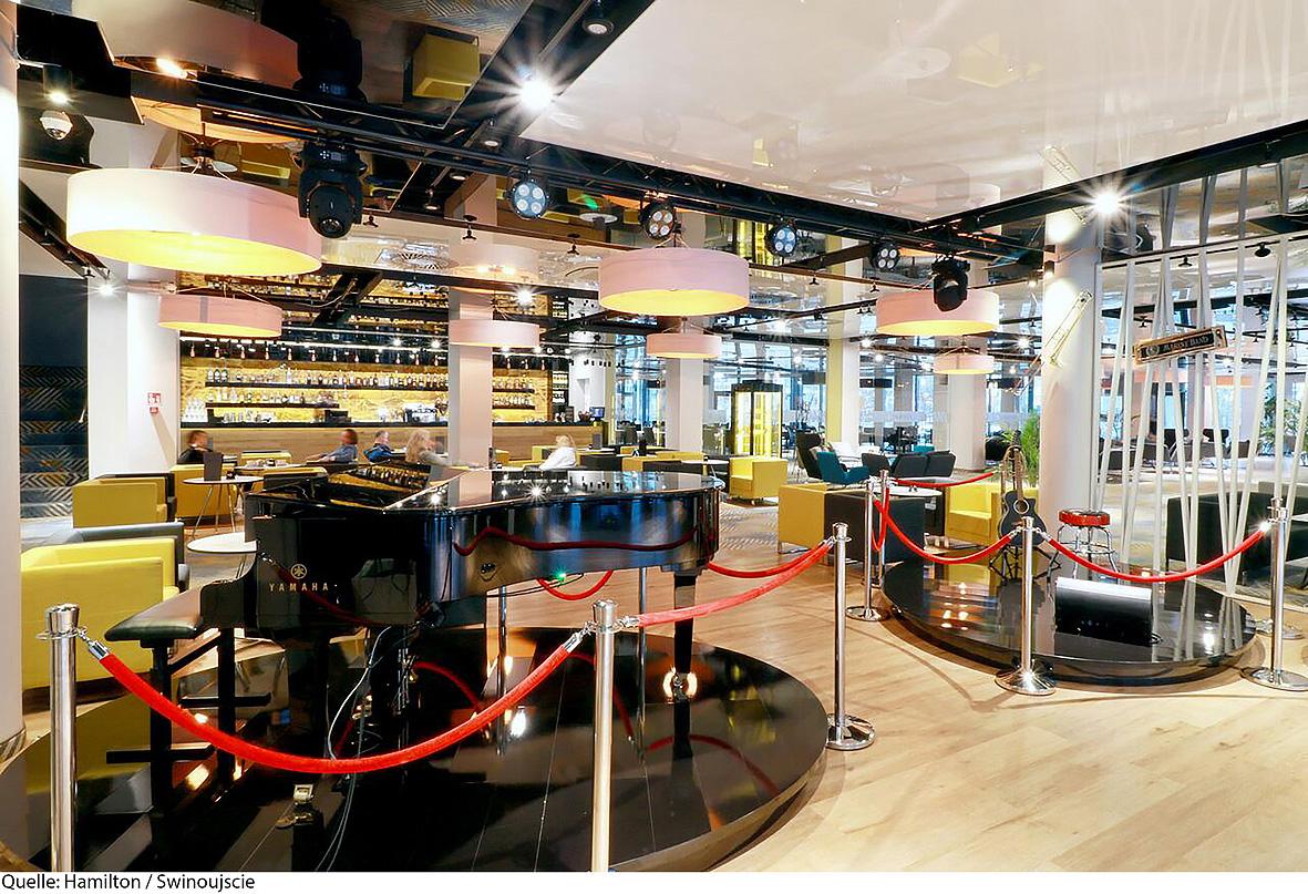recepce / lobby / bar, úschovna zavazadel, wi-fi připojení k internetu, restaurace vyhrazená pro hotelové hosty, bar (v 7. patře), pivnice, společenská místnost, seminární místnost, výtah, terasa s posezením, vyhrazené parkoviště*, garáže*