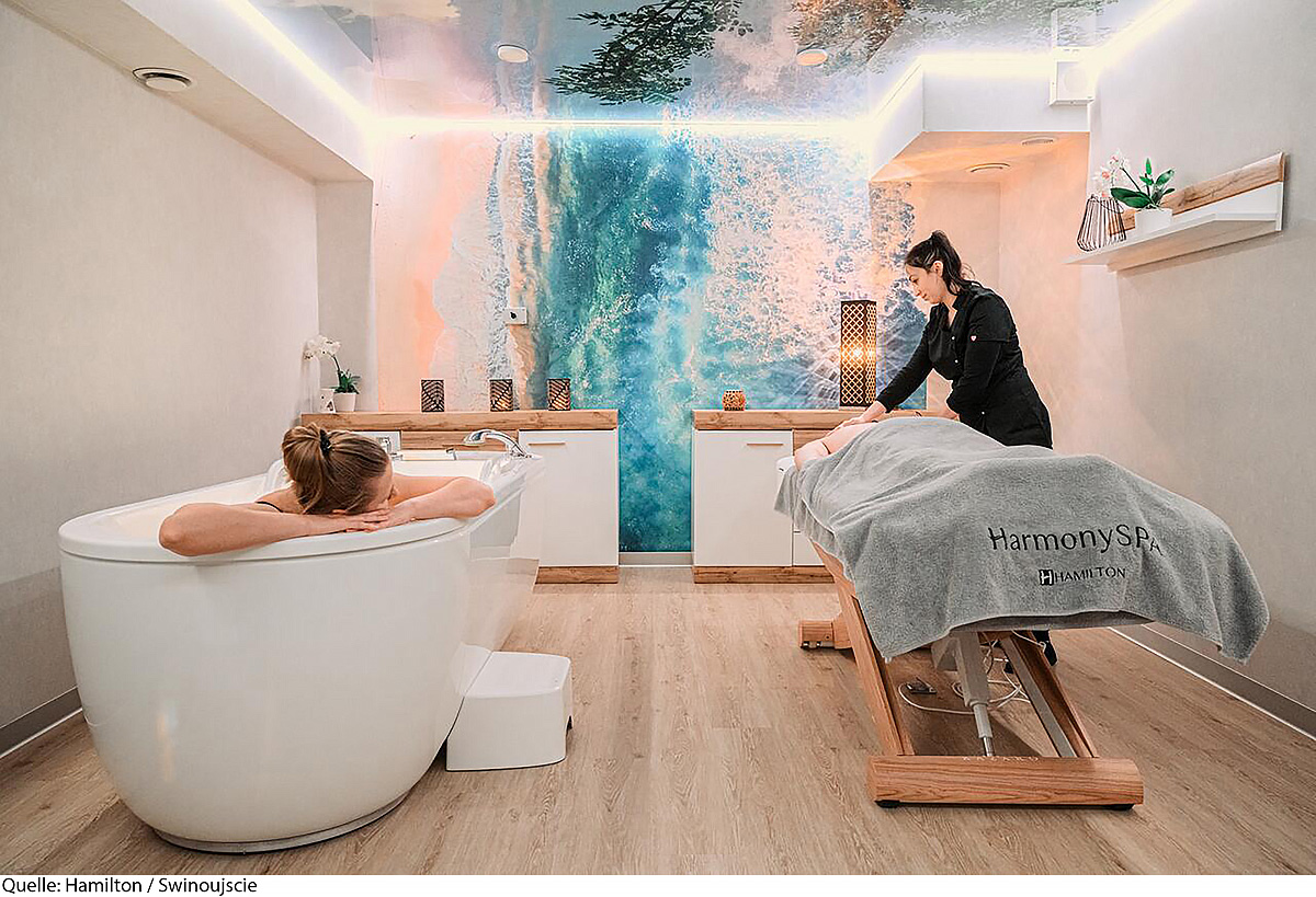 bazén 300 m², sauna, finaská sauna, masáže*, kosmetické služby*, půjčovna* jízdních kol
