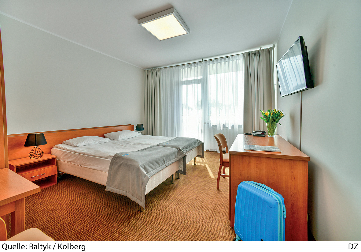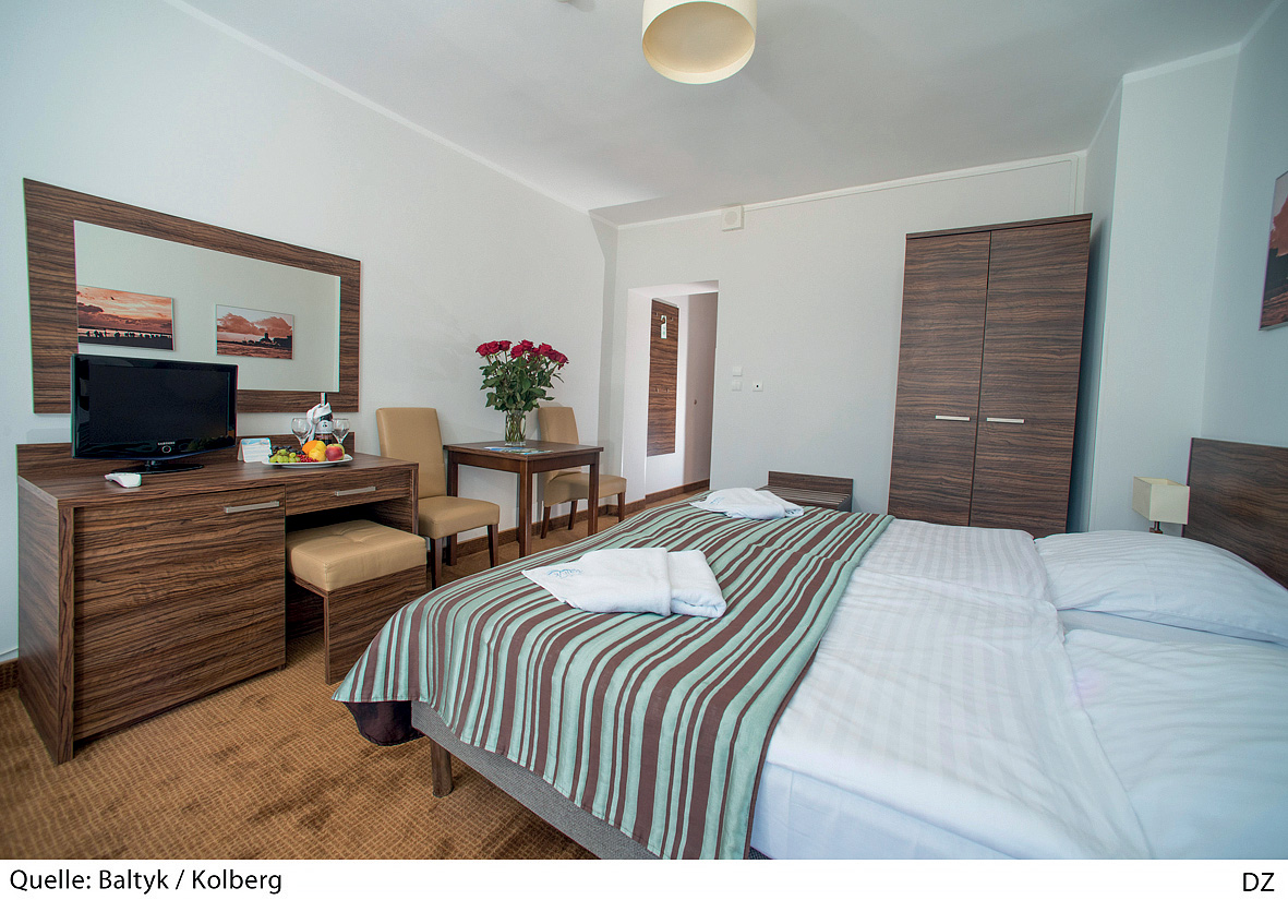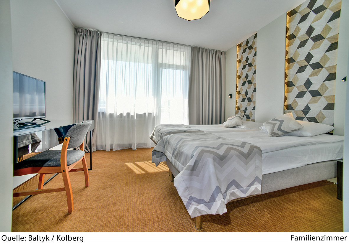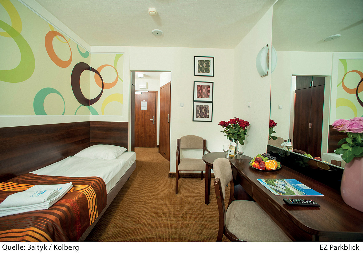 16 m² – pokoj s manželskou postelí či 2 oddělitelnými lůžky, s možností 1 přistýlky, sociální zařízení, balkon s výhledem do parku
