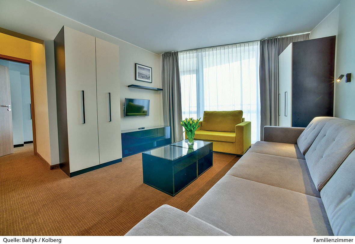 35 m² – prostorný pokoj s manželskou postelí či 2 oddělitelnými lůžky, obývací prostor s možností až 2 osob na přistýlce ve formě rozkládacího gauče, kuchyňský kout, sociální zařízení, balkon s výhledem do parku