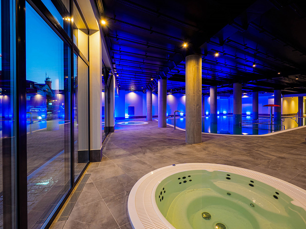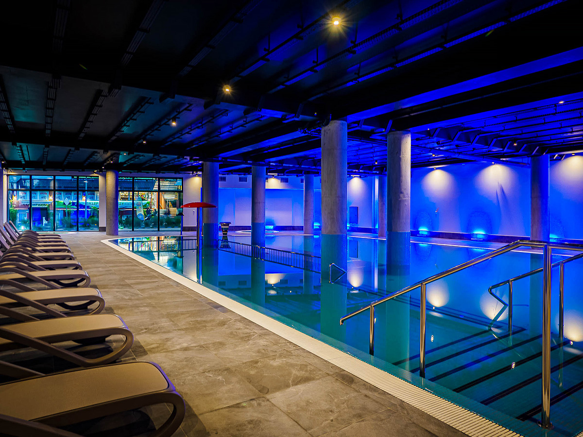 bazén 20 x 14 m, pára#, sauna#, finská sauna#, infrakabina#, vířivka#, solná jeskyně*#, masáže*, kosmetické služby*, široká nabídka léčebných a regeneračních procedur*, relaxační koutek a zahrada s lehátky, posilovna#, služby označené # mohou využívat děti až od 16 let