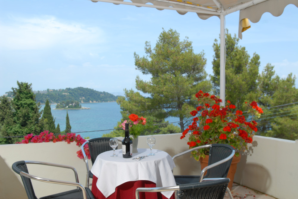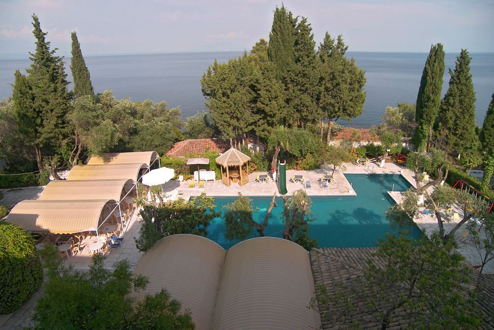 V blízkosti známého paláce Achilleion s krásnými výhledy na ostrůvek Pontikonisi. Hlavní město Korfu cca 6 km (spojení linkovým autobusem, zastávka 50 m), letiště 5 km.