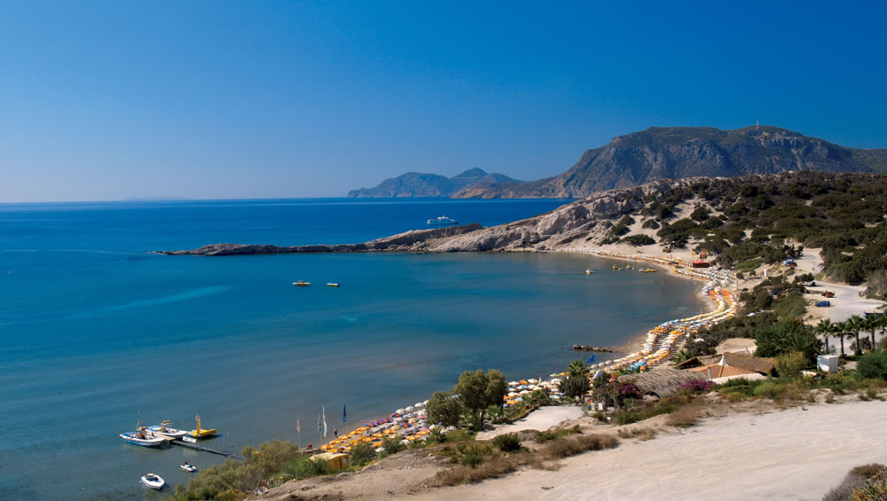Pláže na Kósu jsou velmi pěkné a čisté. Většina z nich je písečná, takže moře u nich může být trochu zkalené vířícím pískem. Najdete zde však i pláže oblázkové. Voda Egejského moře, které ostrov omývá, je krásně průzračná. Většina pláží je dobře vybavena a svým návštěvníkům tak poskytuje veškerý komfort. Lehátka a slunečníky jsou na plážích běžně k dostání za poplatek. Mezi nejznámější pláže patří bezesporu Tigaki s jiskřivě bílým pískem a písečnými dunami, dále dlouhá pláž Lambi s pozvolným vstupem do moře (vhodná proto pro rodiny s dětmi), pláž Marmari se známými písečnými dunami a mnoho dalších rušnějších pláží či klidných romantických zátok. Jedno z nejhezčích míst pro objevování pobřeží je oblázková pláž Agios Stefanos s malým ostrůvkem se zvonicí. Právě sem se uchylují vyznavači potápění či šnorchlování. Je zde však třeba dávat pozor na kamenité útesy. Další zajímavou pláží je oblázková Agios Fokas nacházející se v jihovýchodní části ostrova. Naleznete zde díky sopečné aktivitě sirný, ale nezapáchající, pramen vytékající do moře, kde se můžete koupat v teplém přírodním bazénku a příjemně relaxovat. Kós je zelený ostrov a díky pestrému okolí, průzračnému moři a zářícímu písku tak přináší pocit nezapomenutelné dovolené.