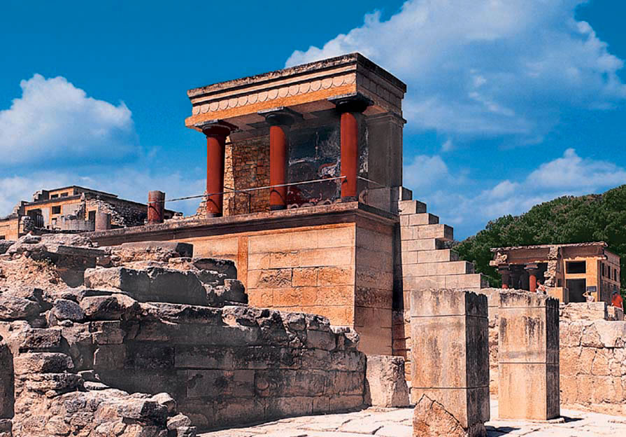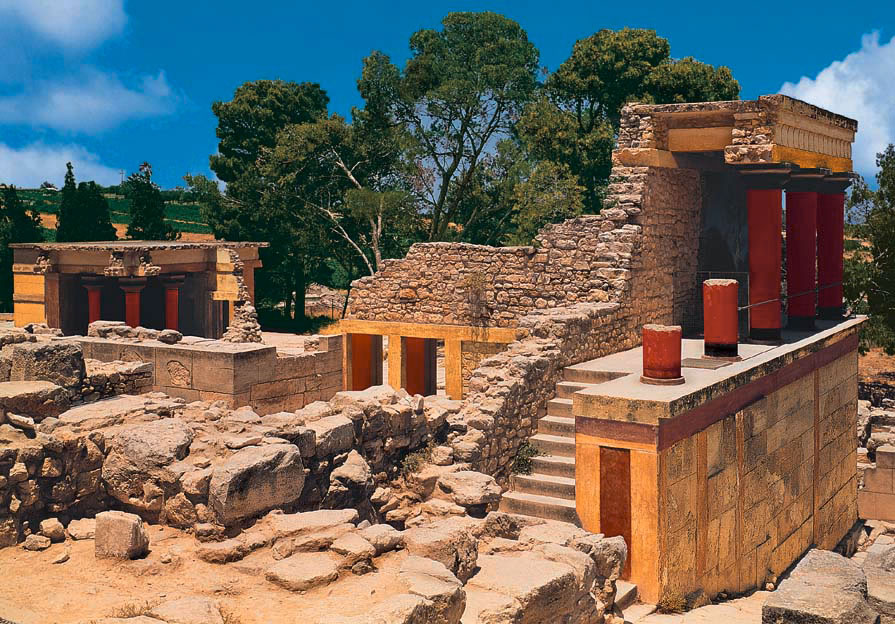 Ostrov nabízí řadu historických památek celosvětového významu, svědků nejstarší evropské kulturní civilizace. Za všechny lze na prvním místě jmenovat královský palác v Knóssu nedaleko hlavního města Heraklionu, roku 1894 objevený a později necitlivě zrekonstruovaný britským badatelem sirem Arthurem Evansem, považovaný za Labyrint postavený Daidalem pro Mínotaura, znetvořeného syna krále Mínoa. Aby nevyzradil tajemství, král Mínos jej i s jeho synem Ikarem uvěznil. Daidalos se rozhodl z Kréty uprchnout pomocí křídel slepených z ptačího peří a vosku. Letěli na Sicílii, ale Ikaros zkoušel, jak vysoko může vyletět, vosk se mu od slunce rozlepil a Ikaros se zabil. Mínotaura zabil dle legendy Theseus, jenž prošel Labyrintem a s pomocí Ariadniny nitě našel zpět cestu ven.