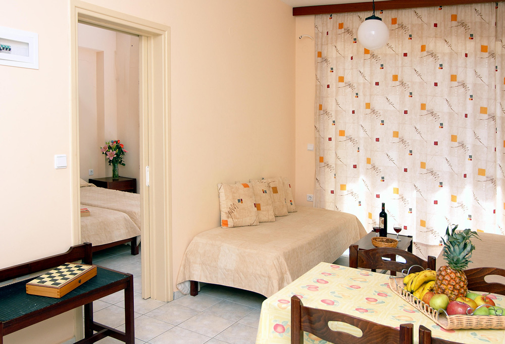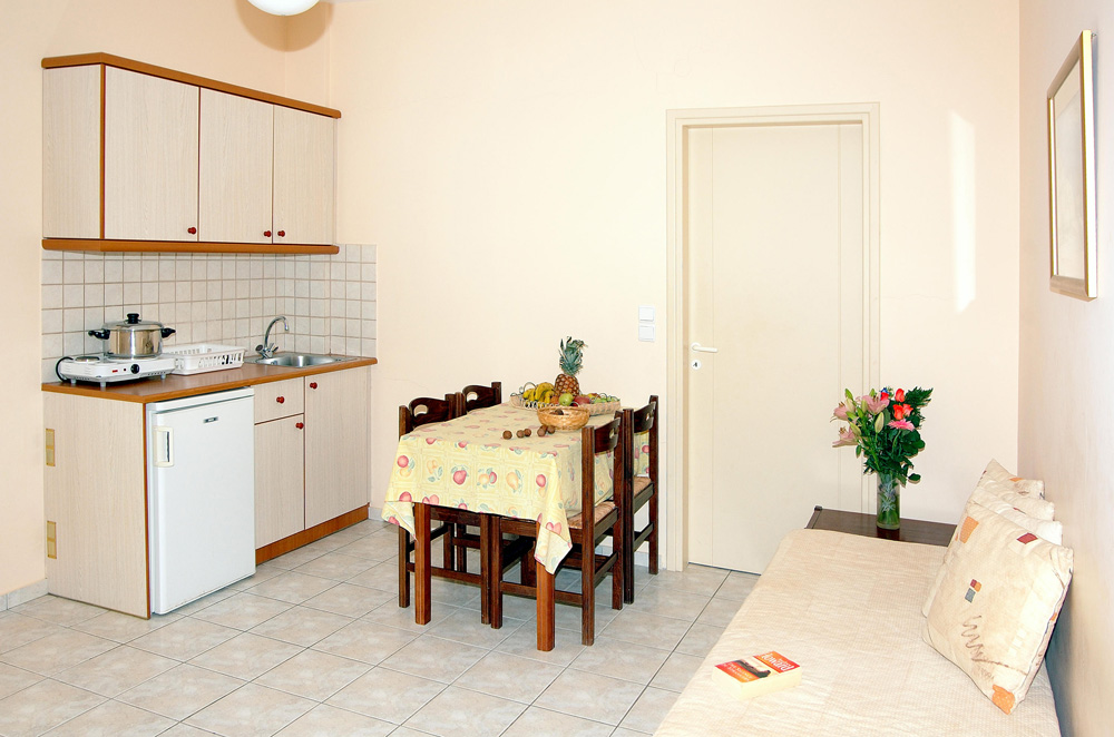 Rodinné apartmány v menším letovisku Sfakaki nedaleko města Rethymno, autobusová zastávka do 200 m od hotelu, přístav a centrum města Rethymno 10 km.