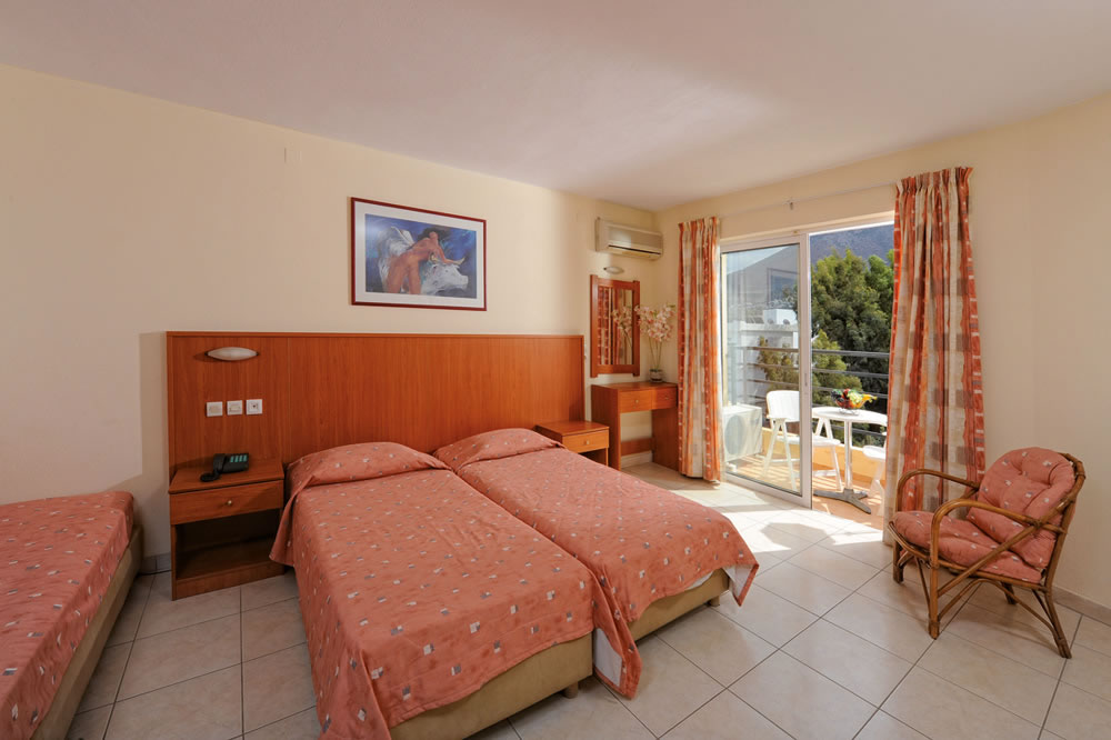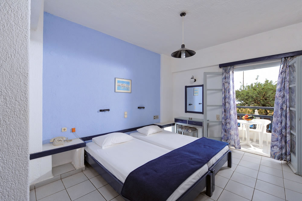 Hotel složený z jedné hlavní a vedlejší budovy v blízkosti centra letoviska Chersonissos. Autobusová zastávka v dosahu hlavní silnice cca 100 m, aquapark v letovisku, letiště 25 km, hlavní město Heraklion 25 km.