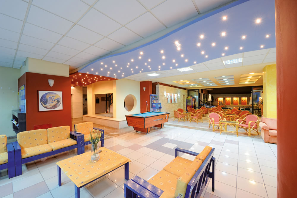 Vstupní hala s recepcí, výtah, bazén, bar u bazénu, směnárna, restaurace, trezor (za poplatek 15€/týden, terasa s lehátky a slunečníky, služby hotelové prádelny, služby půjčovny aut.