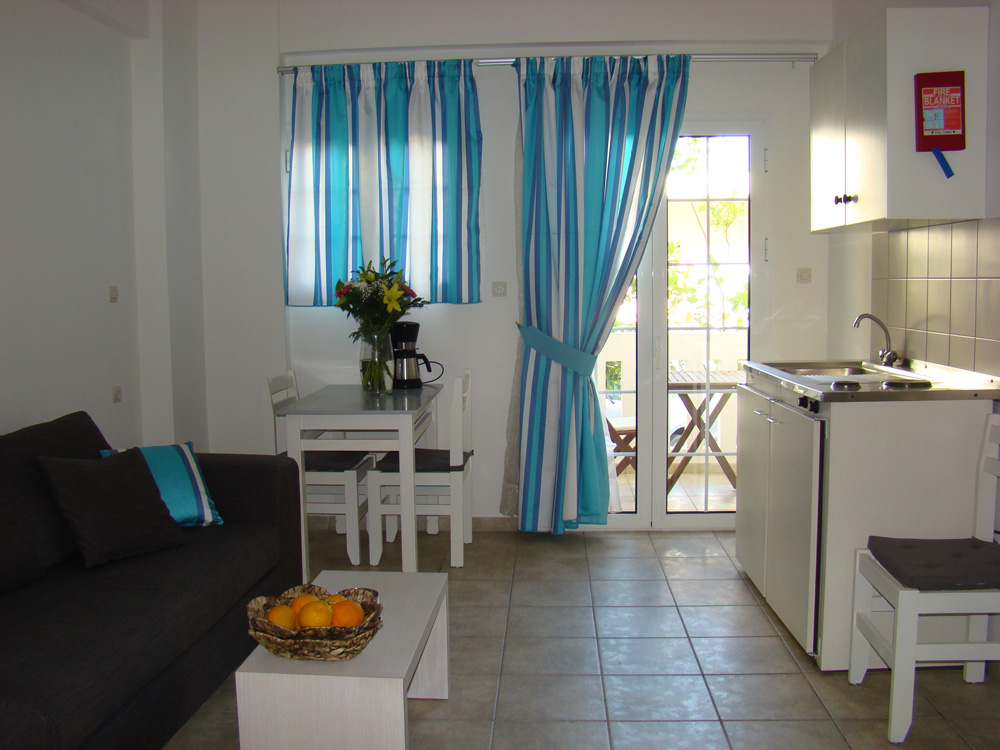 Vstupní hala s recepcí, restaurace, trezor, prádelna a sušárna, výtahy, půjčovna aut. Možno využívat bazén vedjelšího hotelu Chersonissos central.