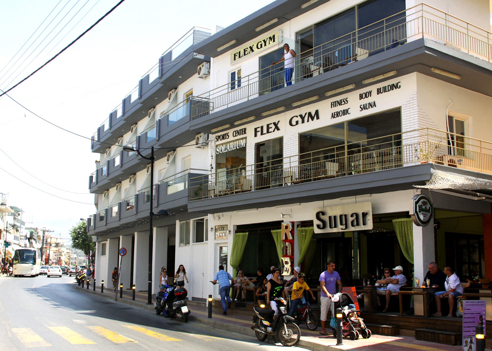 V centru letoviska Hersonissos plného taveren, barů a restaurací. Letiště v Heraklionu vzdáleno cca 30 km, autobusová zastávka pro spojení po ostrově cca 200m