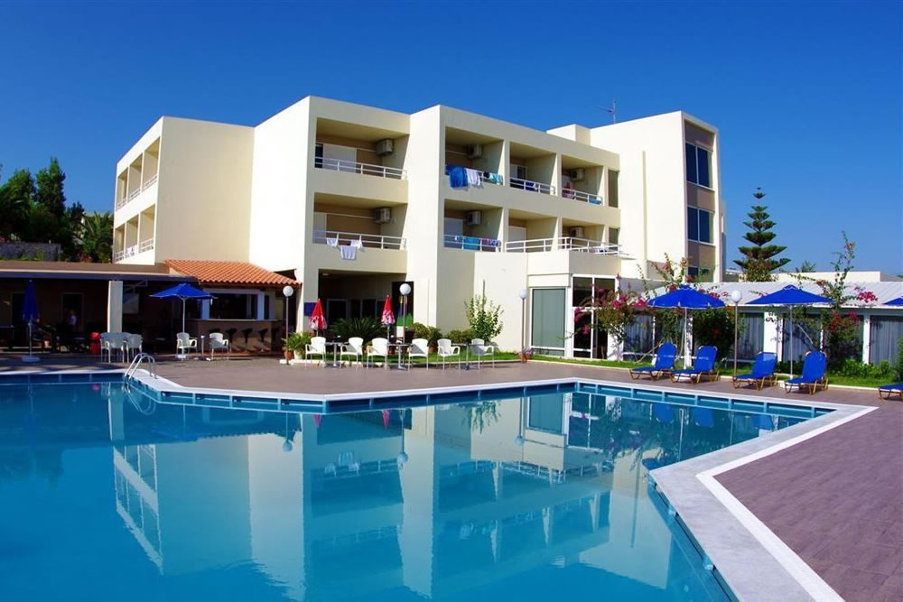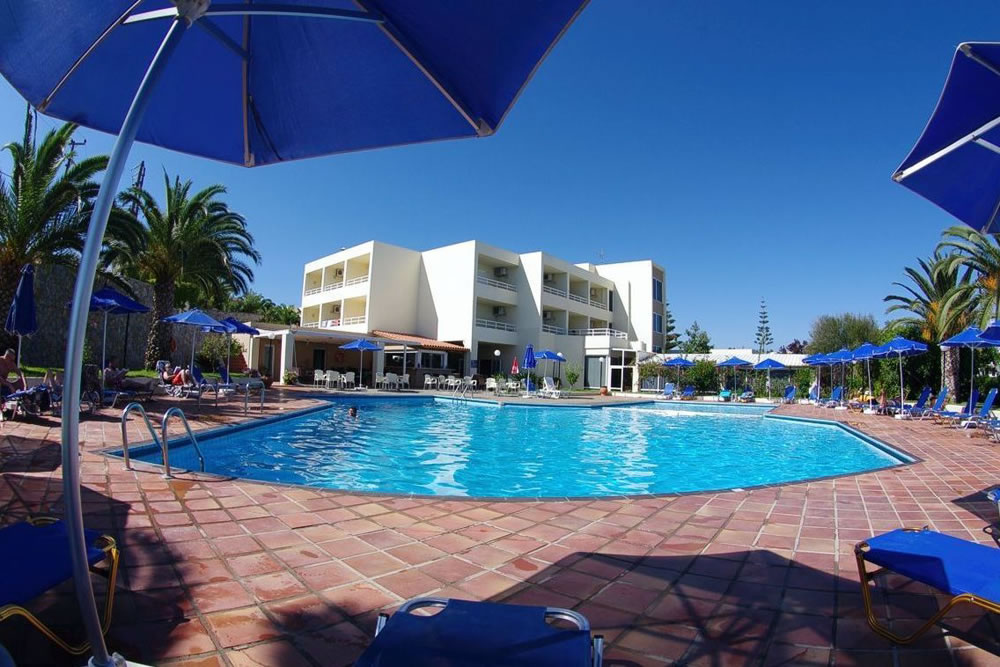 Hotel na kopci v pobřežní oblasti Agia Marina, mimo její rušné centrum, západně od města Chania.