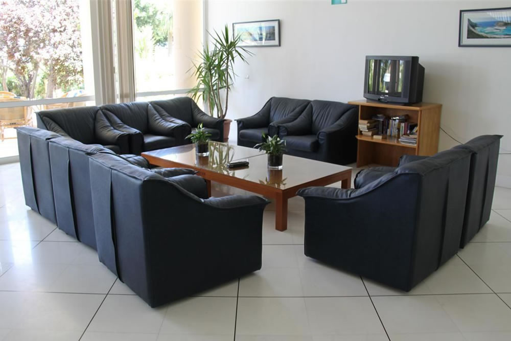 Vstupní hala s recepcí, společenská TV místnost, restaurace, obchod se suvenýry, bar, bar u bazénu, bazén, terasa na slunění s lehátky a slunečníky zdarma.