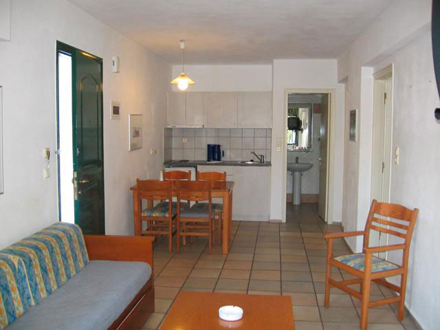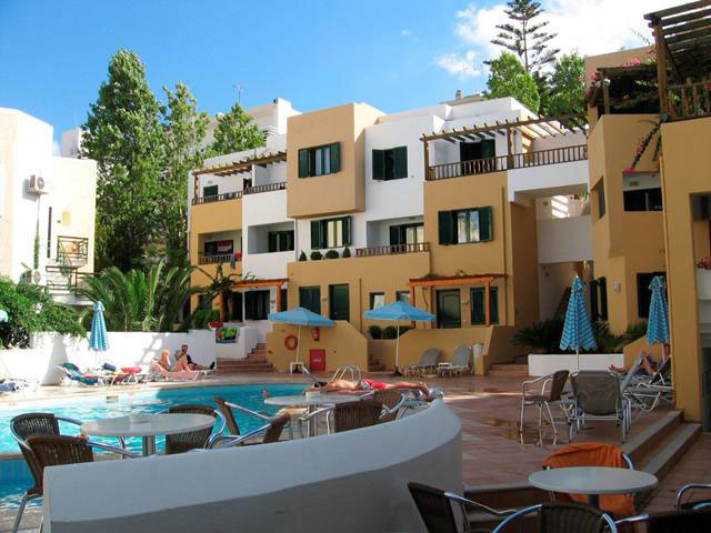 Cca 900 m od centra letoviska Chersonissos a cca 27 km od Heraklionu. V okolí mnoho obchodů, restauarací, barů a taveren.