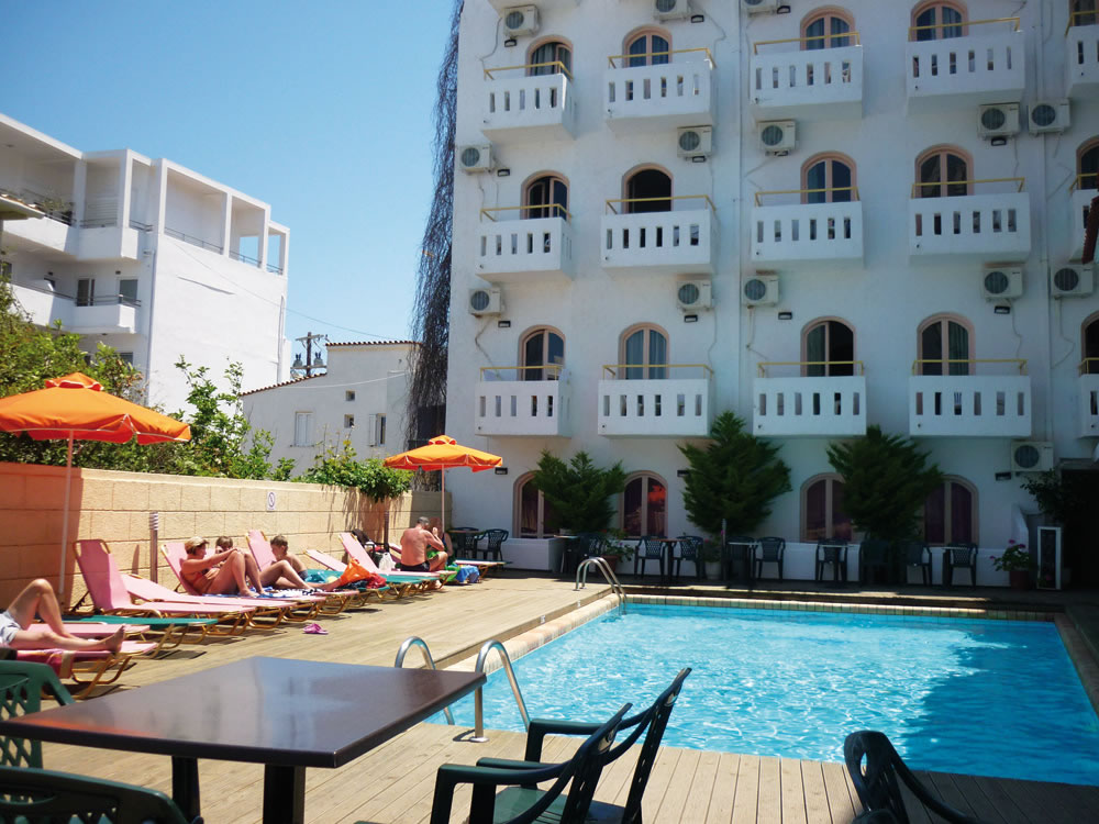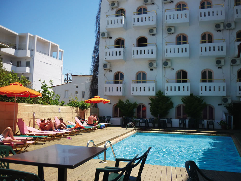 Malý rodinný hotel v oblasti Chersonissos, cca 30 km od letiště v Heraklionu. Přímo v rušném censtu letoviska v blízkosti barů, taveren a restaurací.