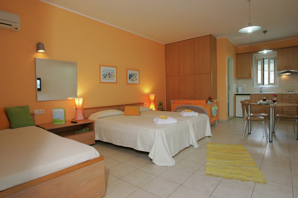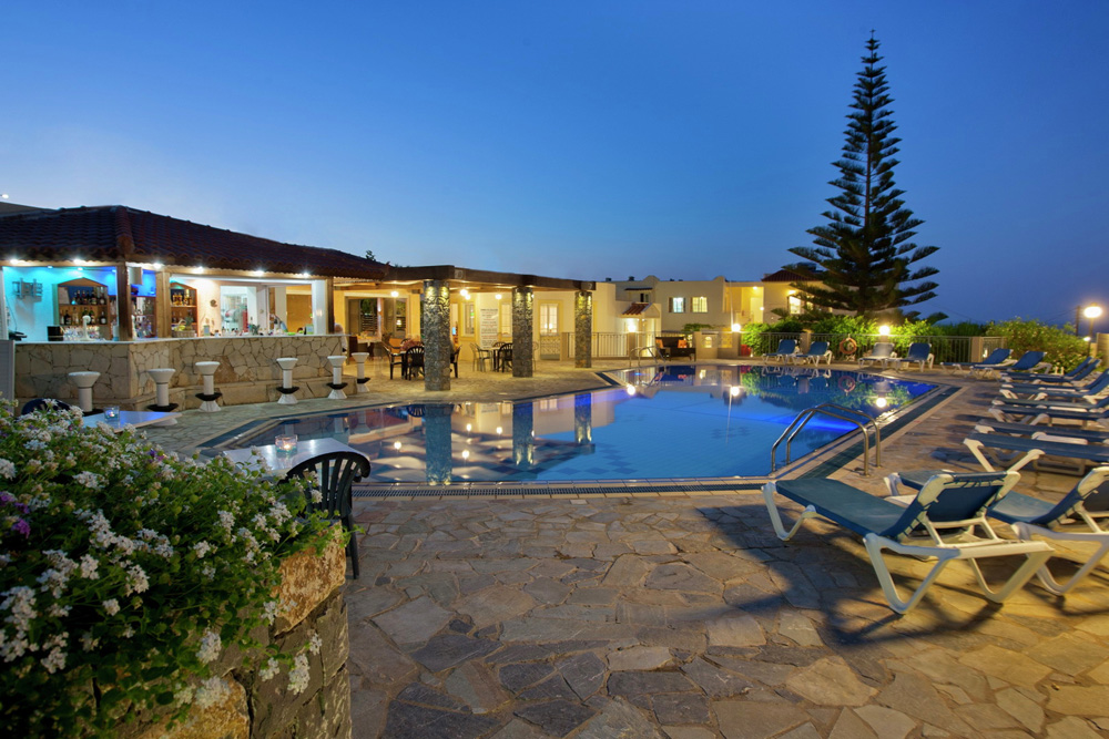 Komplex 22 apartmánů nebo studií, recepce, směnárna, trezor na recepci, bar, společenské prostory s TV. Venku zahrada, bazén, terasa se slunečníky a lehátky zdarma, bar u bazénu, parkoviště.