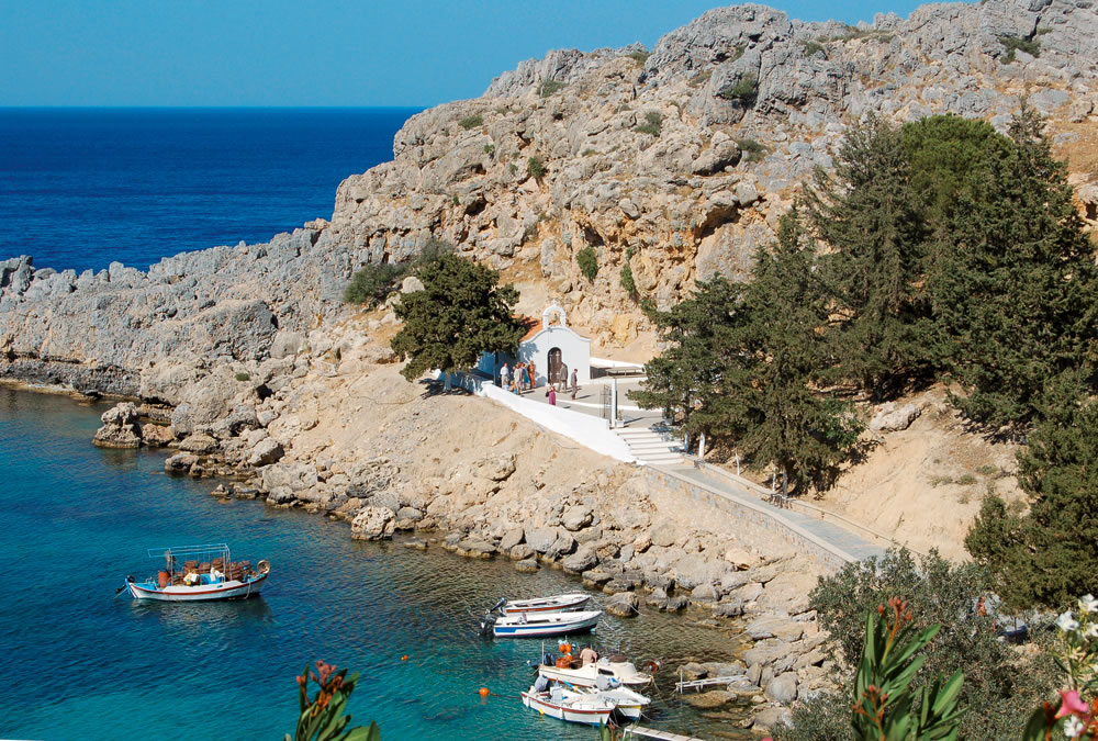 Ostrov Rhodos neboli „Ostrov slunce“ je jednou z nejslunečnějších oblastí v Evropě. Se svými 300 slunečnými dny v roce skýtá pevnou záruku hezkého počasí a příjemně strávené dovolené. I když jsou průměrné teploty na Rhodu jedny z nejvyšších v oblasti, díky svěžím mořským větrům bývá klima snesitelné i během nejvyšší letní sezóny. Většina pláží na Rhodu je oblázková, často je proto vhodné mít s sebou boty do vody, zejména pro děti. Pro delší pobyt na pláži se vyplatí nosit silnou podložku nebo si pronajmout lehátko se slunečníkem. Díky oblázkům v moři je však voda krásně čistá a průzračná. Na Rhodu najdete mnoho hezkých pláží. Největší koncentrace písečných anebo písčito-oblázkových pláží je podél celého východního pobřeží. Budete-li si ostrov projíždět pláž od pláže, zjistíte, jak pestrá místní krajina je. Každá zátoka vypadá jinak a Vy si proto vychutnáte nepřeberně rozmanitou dovolenou. Upozorňujeme na to, že pláže u větších hotelových komplexů (např. pláž Kolymbia) ve známých turistických letoviscích jsou velmi často plné lidí. Vydáte-li se však podél pobřeží, můžete narazit i na zcela opuštěné plážičky a romantická zákoutí. Jedna z nejznámějších písečných pláží na Rhodu, a také jedno z nejlepších míst pro rodinnou dovolenou, je pláž Faliraki. Je dlouhá přes 5 km a naleznete zde všechny možné atrakce i největší vodní park. Mezi další oblíbené pláže patří Gennadi (oceněná prestižním hodnocením „Modrá vlajka“) nebo pláž Glystra, které jsou situovány blízko městečka Lardos. Pláž Lindos je písčitá a vhodná pro rodiny s dětmi.