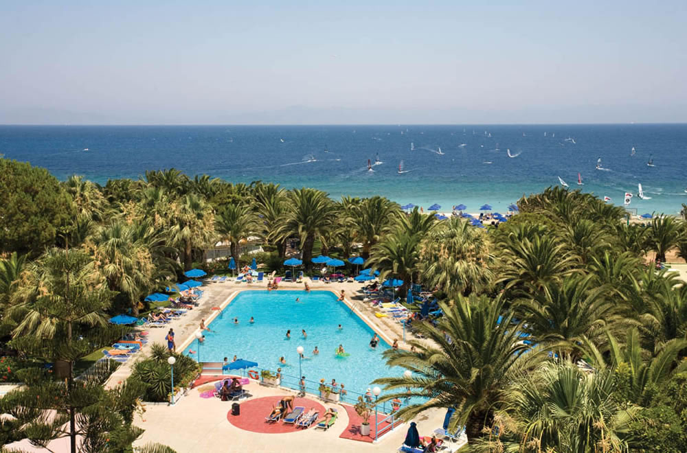 Hotelový komplex v živém letovisku Ialyssos cca 10 km od historického města Rhodos. Autobusová zastávka v blízkosti hotelu