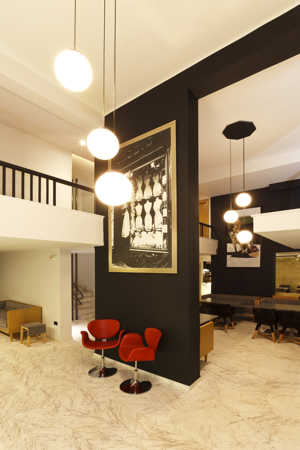 Vstupní hala s recepcí, výtah, lobby, bar, trezor, parkoviště. Klienti mohou využít bazénu sesterského hotelu Amphitryon Boutique.