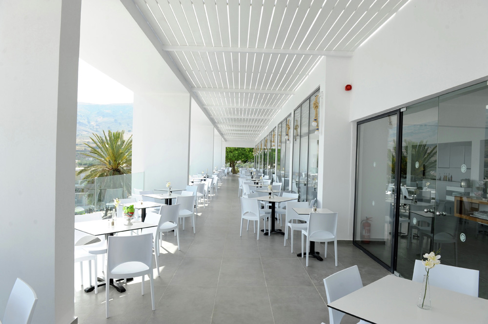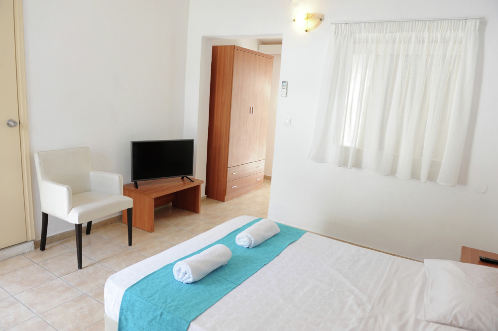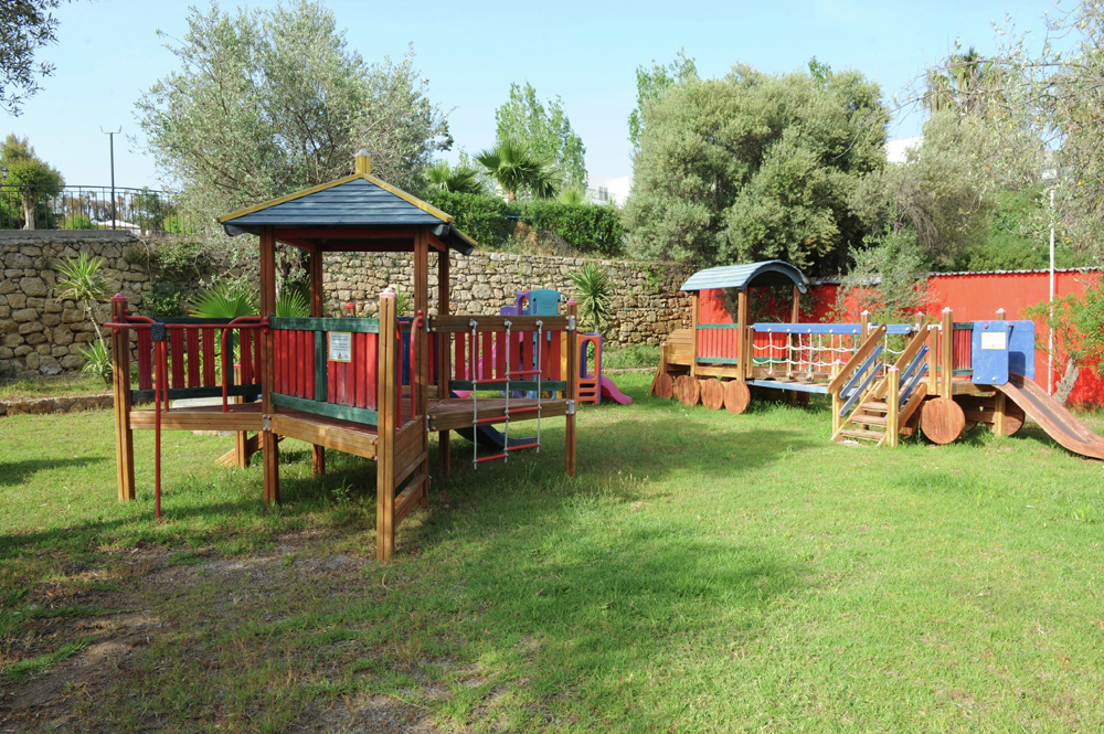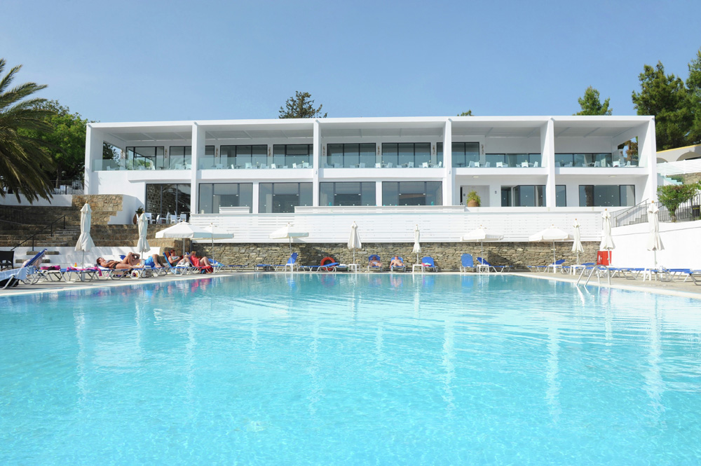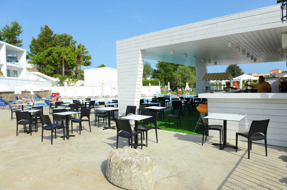 Moderní hotel hotel, 3 budovy, minimarket, v udržované zaharadě 2 bazény s terasou na slunění, dětský bazén. Lehátka a slunečníky zdarma. Osušky nejsou k dispozici.