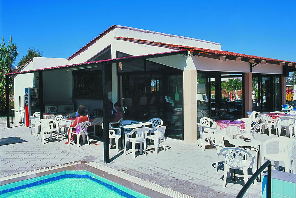 Vstupní hala s recepcí, společenská místnost s TV, restaurace, bar, bazén, terasa na slunění s lehátky a slunečníky zdarma.